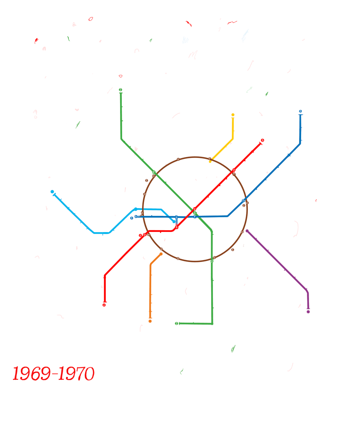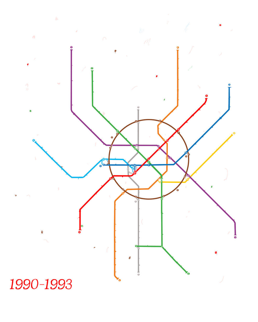 Это несколько разгрузило Кольцевую линию, но не излечило «врожденный порок» радиально-кольцевой системы: плотность линий и станций убывает по мере удаления от центра к периферии, а на входе радиусов в центр, наоборот, возникает эффект бутылочного горлышка. Предлагались разные варианты решения проблемы: строительство второй кольцевой линии, вилкование радиальных линий на периферии города, строительство скоростных хордовых линий, которые, приближаясь к центру, обходили бы его по касательной. Победила в этом историческом споре, как мы знаем, идея дополнительных колец, в конце концов, мысли о ней появились более 30 лет назад.