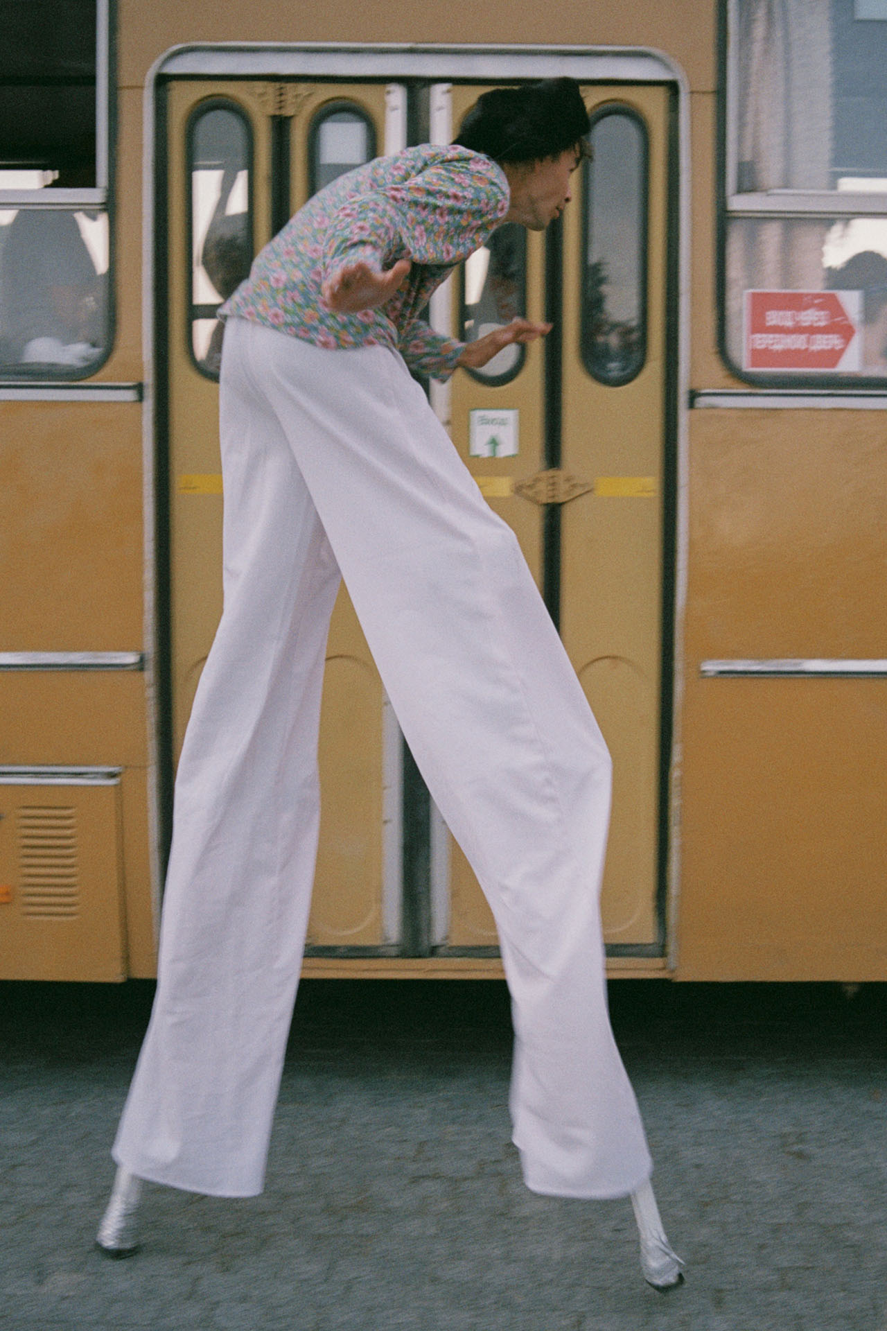 У меня есть фото, где чувак на ходулях в больших белых штанах бежит за автобусом. Кажется, будто он опоздал и кричит водителю: стой, стой. Абсурд. Но здесь же обшарпанный желтый автобус с табличкой, на которой трафаретом выкрашен его номер. Это такой советский индустриальный хардкор, который у нас повсюду. Хрущевки, панельки, дыры в дорогах — можно долго накидывать, что именно с этим ассоциируется. Я во многом счастлив, что мы живем в такое непростое время, потому что камера видит это напряжение, и это тоже несовершенства мира.
