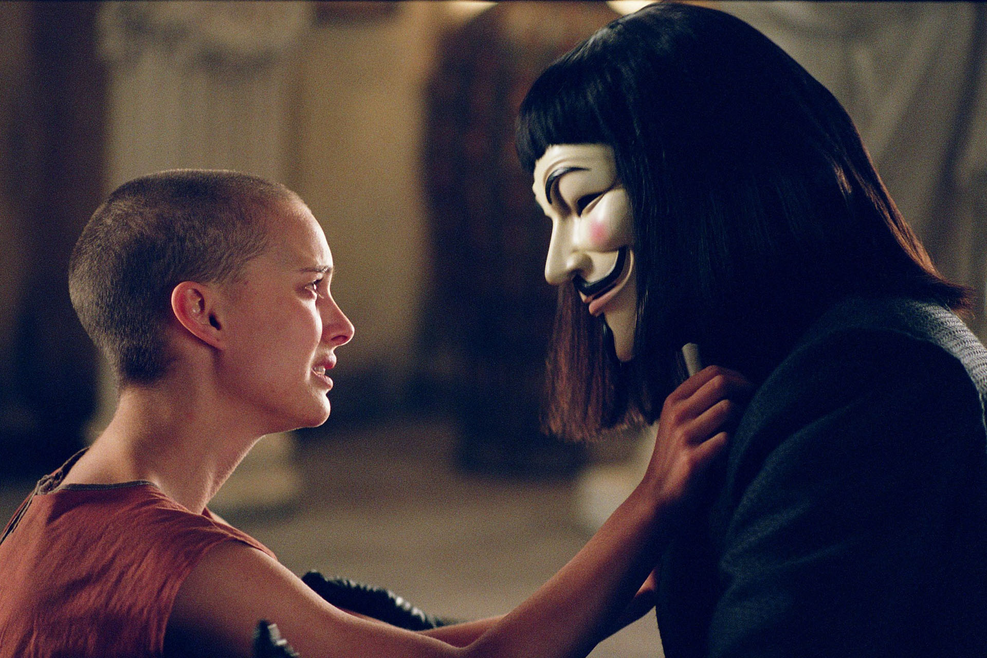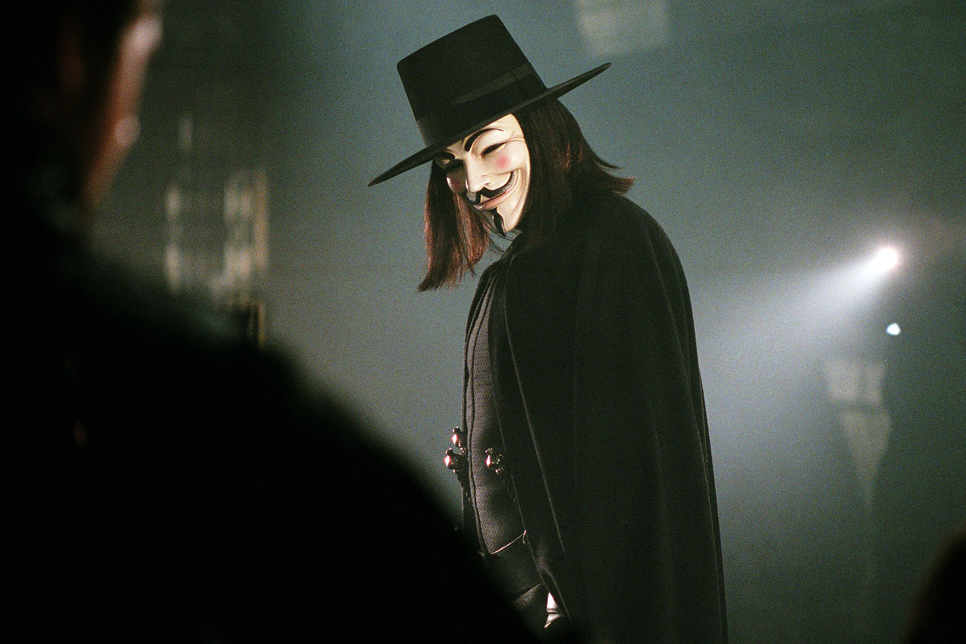 Основа образа V — фигура Гая Фокса, участника знаменитого Порохового заговора 1605 года в Англии. Заговорщики-католики планировали теракт против протестантского короля Якова I — хотели взорвать парламент. Но 5 ноября Гая Фокса поймали, пока он сторожил взрывчатку, и горе-террорист сдал своих подельников. Радуясь, что король выжил, люди зажигали костры по всему Лондону. Праздник закрепился в британской культуре, и с тех пор ежегодно 5 ноября там жгут чучело Гая Фокса. В XVIII веке в канун праздника на улицах начали появляться дети, одетые в картонные маски Гая Фокса и просившие деньги для старины Гая. А ещё от имени заговорщика произошло английское слово guy — сперва так называли конкретное чучело, потом любое чучело, затем уродливого мужчину, а в конце концов — любого парня вообще.