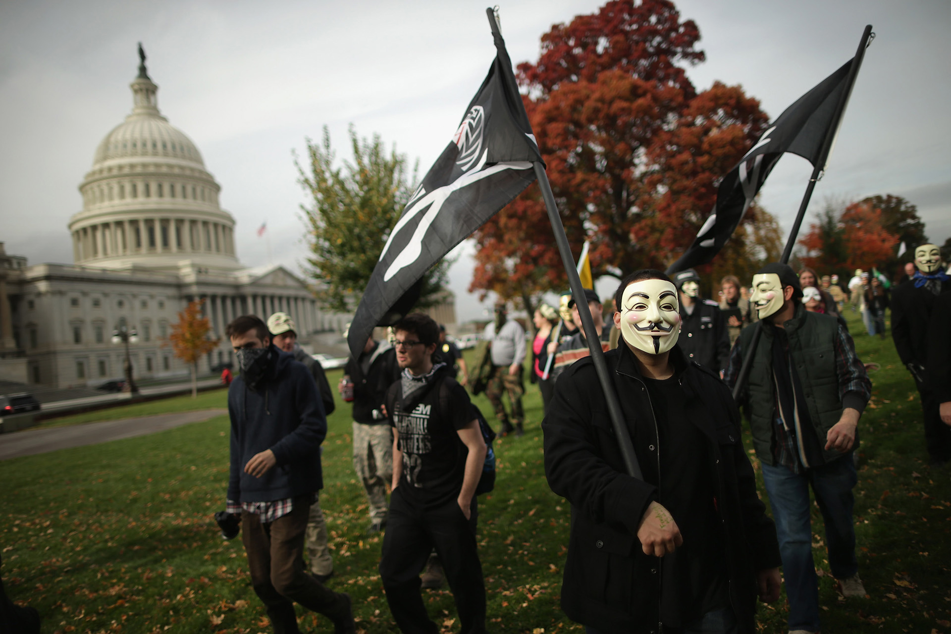 Ещё шире этот образ растиражировался в 2011 году, когда начались массовые выступления движения «Захвати Уолл-стрит». Люди в масках Гая Фокса выступали против социального неравенства и стремились привлечь внимание к преступлениям финансовых элит. Среди прочих на протест в маске Гая Фокса вышел Джулиан Ассанж. Символ не остался в прошлом, и даже при штурме Капитолия в 2021 году некоторые протестующие использовали его. Был бы повод, а маски Гая Фокса найдутся.
