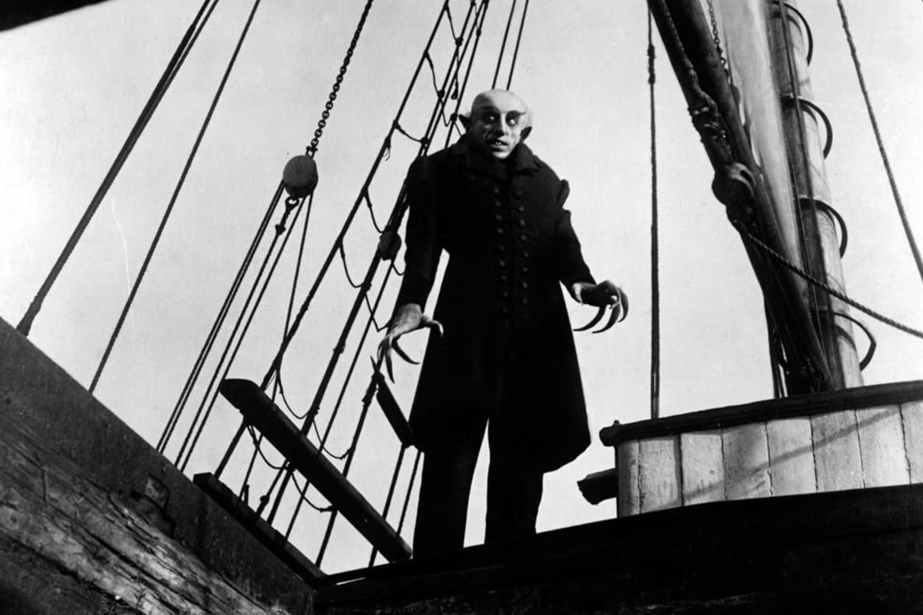 Если не считать не сохранившуюся до наших дней упомянутую выше «Смерть Дракулы» венгерца Кароя Лайтаи, картина Фридриха Мурнау считается первой киноадаптацией «Дракулы» Стокера. И не только первой, но и без ложного преувеличения — великой. Мурнау на заре становления немецкого экспрессионизма снял несколько фундаментально важных для истории кино фильмов, указавших ему дальнейший путь развития. Его «Носферату» обходится очень вольно с первоисточником: изменено название фильма и имя графа, ставшего здесь Орлоком (Макс Шрек, которого первые зрители из-за немыслимого по тем временам грима действительно принимали за вампира). Эти перемены не навредили произведению, но попортили крови Мурнау, с которым судились наследники Стокера. Однако всех рассудил не суд, а время. «Носферату: Симфония ужаса» определил образ ужаса на экране, сделав его максимально убедительным. В трактовке постановщика любовь уступает хоррору, заполнившему всё экранное пространство. Зло здесь притягательно: новообретённая возлюбленная вампира Элен, вопреки опасности, приходит к нему и разрешает испить своей крови, а Орлок в процессе забывает про рассвет, способный погубить его солнечными лучами. Мурнау увидел в «Дракуле» историю одержимости и обречённости: бессмертие — блеф, всё конечно, а смерть по итогу настигнет каждого.