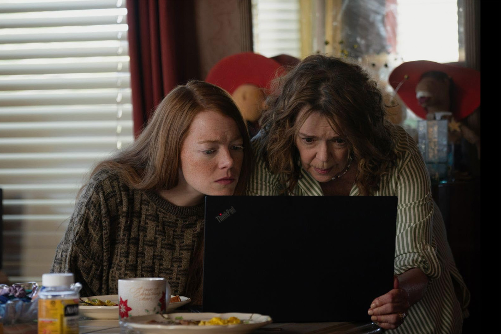 Вокруг этого дуэта кружится хоровод других жертв времени. Это жена шерифа (Эмма Стоун), экзистенциальная пустота которой оказывается плодородной почвой для ядовитых семян секты под предводительством харизматичного гуру (Остин Батлер). Это её мать (Дирдри О’Коннелл), бормочущая теории заговора и потерявшая связь с действительностью, как, собственно, и дочь. И, наконец, молодёжь, движимая не столько идеалами справедливости, сколько желанием выделиться. Подростки устраивают на пустынных улицах митинги под знамёнами BLM, и это один из самых пронзительных образов у Астера. Их протест — это и пародия, и искренний крик души поколения, которое ищет себя в лабиринте чужих лозунгов, лихорадочно гугля «что почитать», чтобы не ударить в грязь лицом перед объектом своей влюблённости.