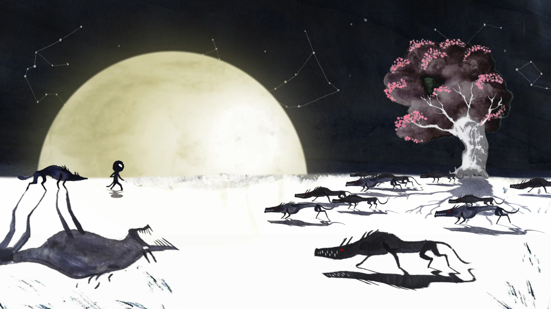 Не менее диковинной может показаться китайская мультипликация, которая выполнена тушью в стиле традиционной китайской живописи. Анимация воссоздаёт древнюю легенду китайского народа Цян, родственного тибетцам. Это история о мартышке, которая отправилась в трудное путешествие к священной горе, чтобы раскрыть секрет тепла. Завладев огненным камнем, она превращается в человека. При всей своей визуальной необычности сюжет традиционен для общемировой культуры и отсылает к героическому эпосу, а темы внутреннего роста и дружбы становятся ключевыми.