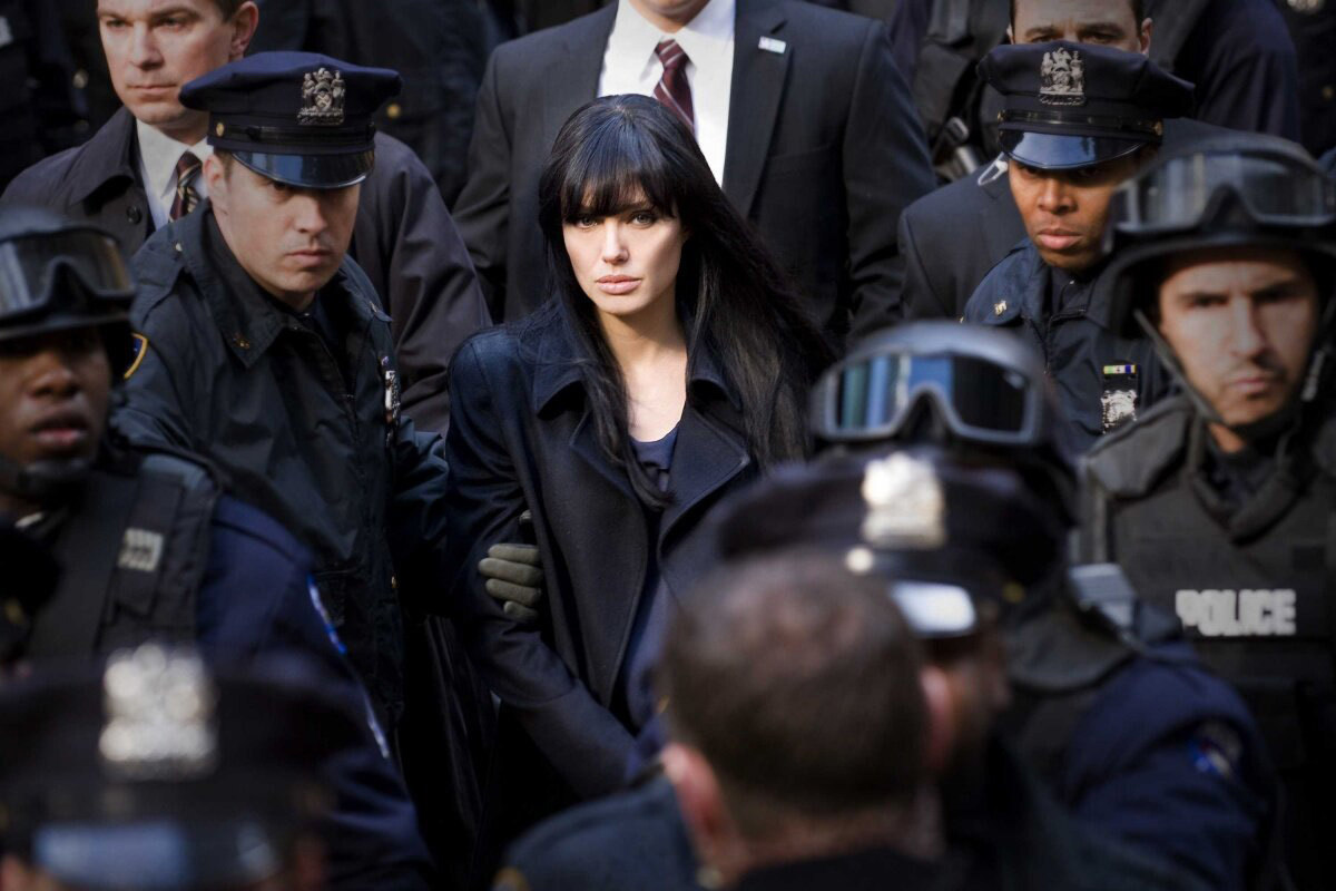 Сотрудницу американского ЦРУ Эвелину Солт (Анджелина Джоли) подозревают в работе на российскую разведку. Чтобы доказать свою невиновность (или же скрыть правду о своем происхождении), она едет в Россию. Там героиня из изящных классических костюмов переодевается в пончо и меховую шапку. Пейзажи на фоне тоже меняются: с залитых солнцем — на мрачные и холодные.