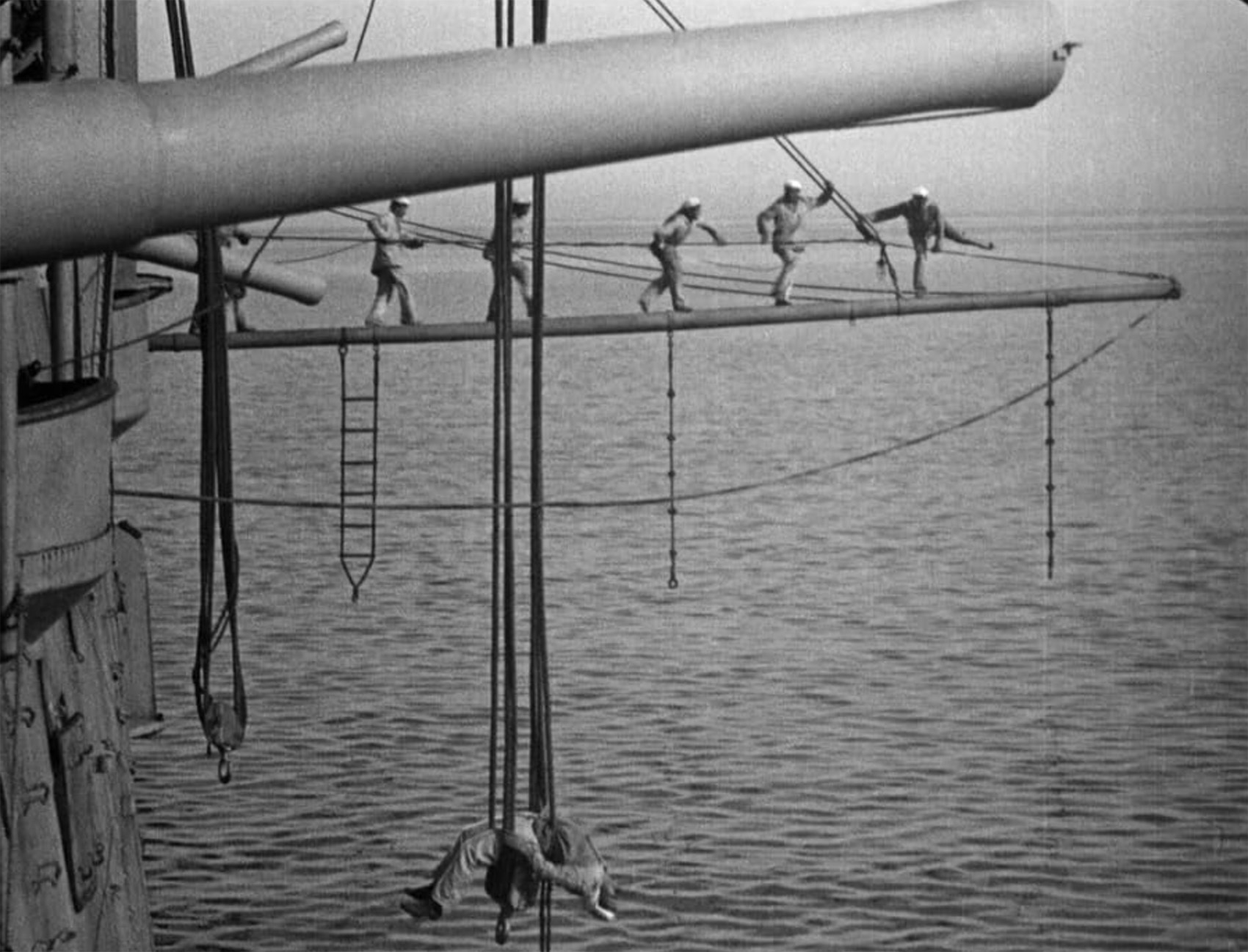 Но, кажется, Эйзенштейну нравилось пугать зрителя. Тормошить его, немного над ним издеваться. Это в ту пору было естественным художественным методом. Скажем, в Германии Бертольд Брехт изобрёл «эпический театр», в рамках которого зритель вовлекался в действие, а «четвёртая стена», отделявшая зал от сцены, разрушалась. В финальном кадре «Потёмкина» военный корабль вплывает в зал, накрывая собой зрителя, как бы давя его после всего увиденного. А показано за 75 минут было много.