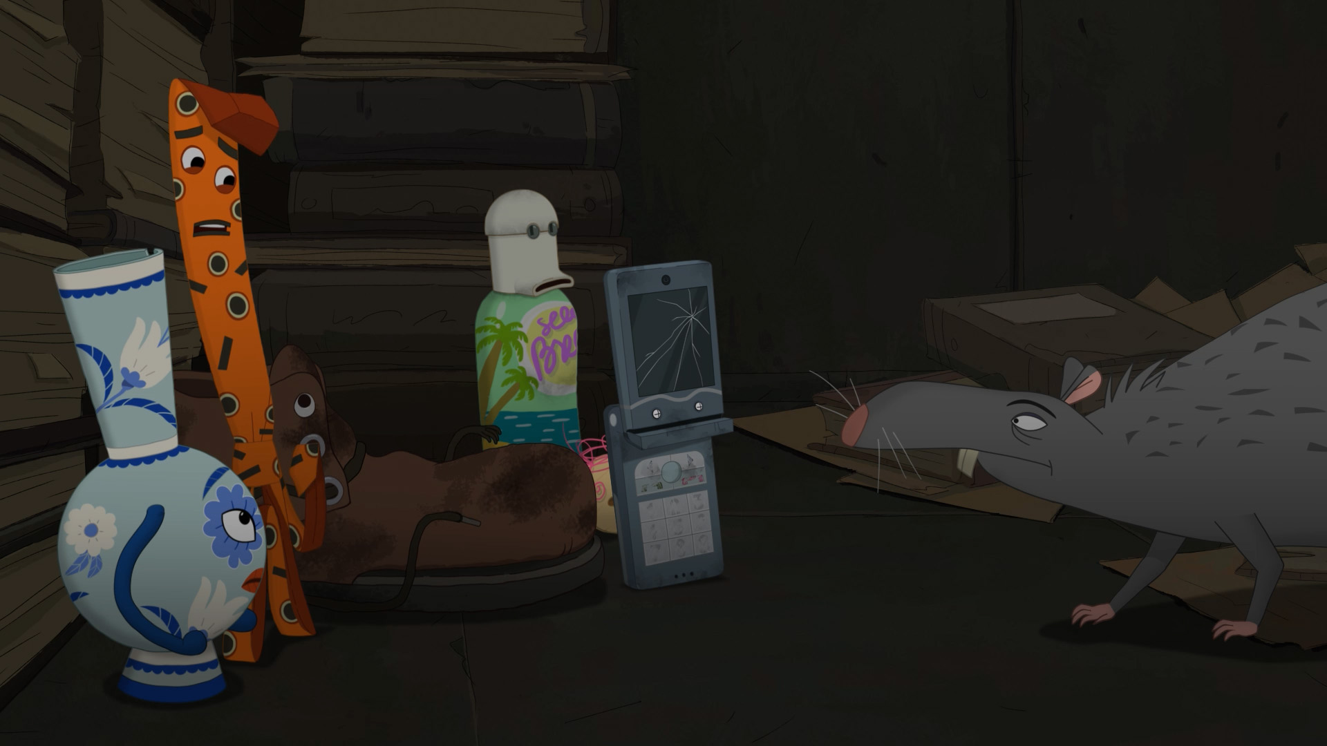 Герои его фильма — мусор, отработанный материал, и по этому поводу режиссер не создает никаких иллюзий. Пусть пластиковый пакет рассказывает о рае, его, к сожалению, нет, поэтому персонажи, имеющие отличительные черты и яркие характеры, обречены. Тема смерти — очень сложная в работе для анимации, ориентированной на детскую аудиторию. Если в 1940-х годах в «Бемби» смерть являла себя в первые же минуты (мать оленёнка жертвует собой во время их преследования охотниками), то уже во франшизе «История игрушек» (1995–...) виден другой подход. Когда брошенные игрушки становятся ненужными, они отчаянно пытаются найти хозяина и обретают новый дом. Есть лишь одна очень страшная сцена, когда они принимают свою гибель и прижимаются друг к другу на пути в жерло печи перерабатывающего завода. Они, конечно же, избегают смерти, но за время всего путешествия их внешний облик практически не меняется. Совсем другой подход у Константина Бронзита: он обращается со своими героями как с реальными предметами — немудрено, что они пачкаются и ломаются. Это делает их живыми, одушевлёнными, а потому любая опасность кажется реальной.