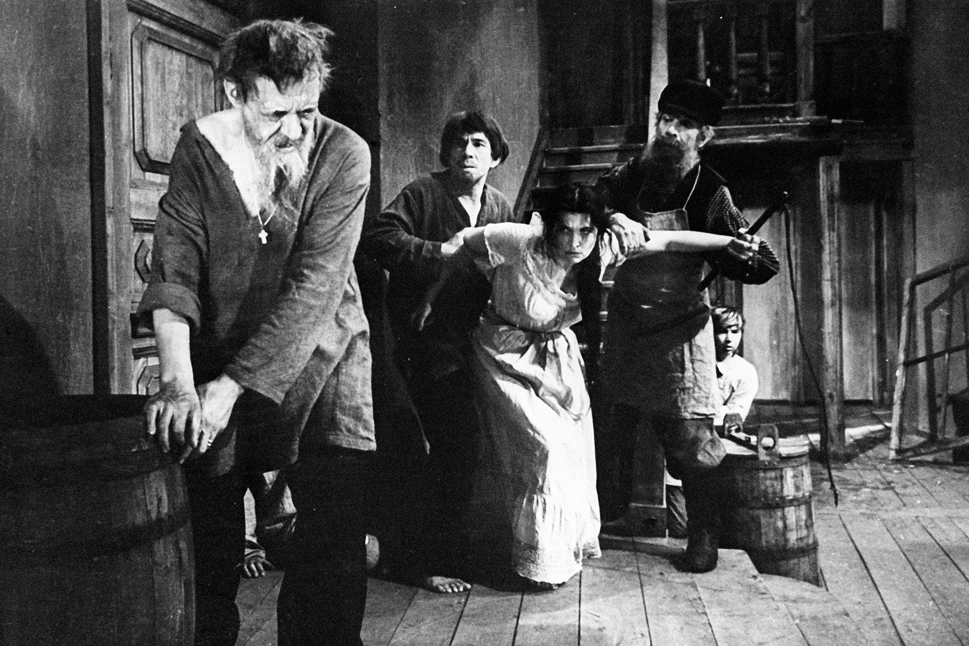 Из таких вот сценок зажиточного несчастья Николай Лесков быстро творит слэшер. Заскучавши, Катерина встречает Сергея, миловидного приказчика-ловеласа, который тотчас её соблазняет. В силу некоторых случайностей адюльтер обыкновенный становится Прелюбодеянием с Горчинкой: свёкор узнаёт о грехе, отчего запирает Сергея в погребе и настойчиво истязает. Вот, казалось бы, и сказочке конец, но вскоре старик умирает от того, что поел «грибков с кашицей». Сергей на воле, Катерина в доле.