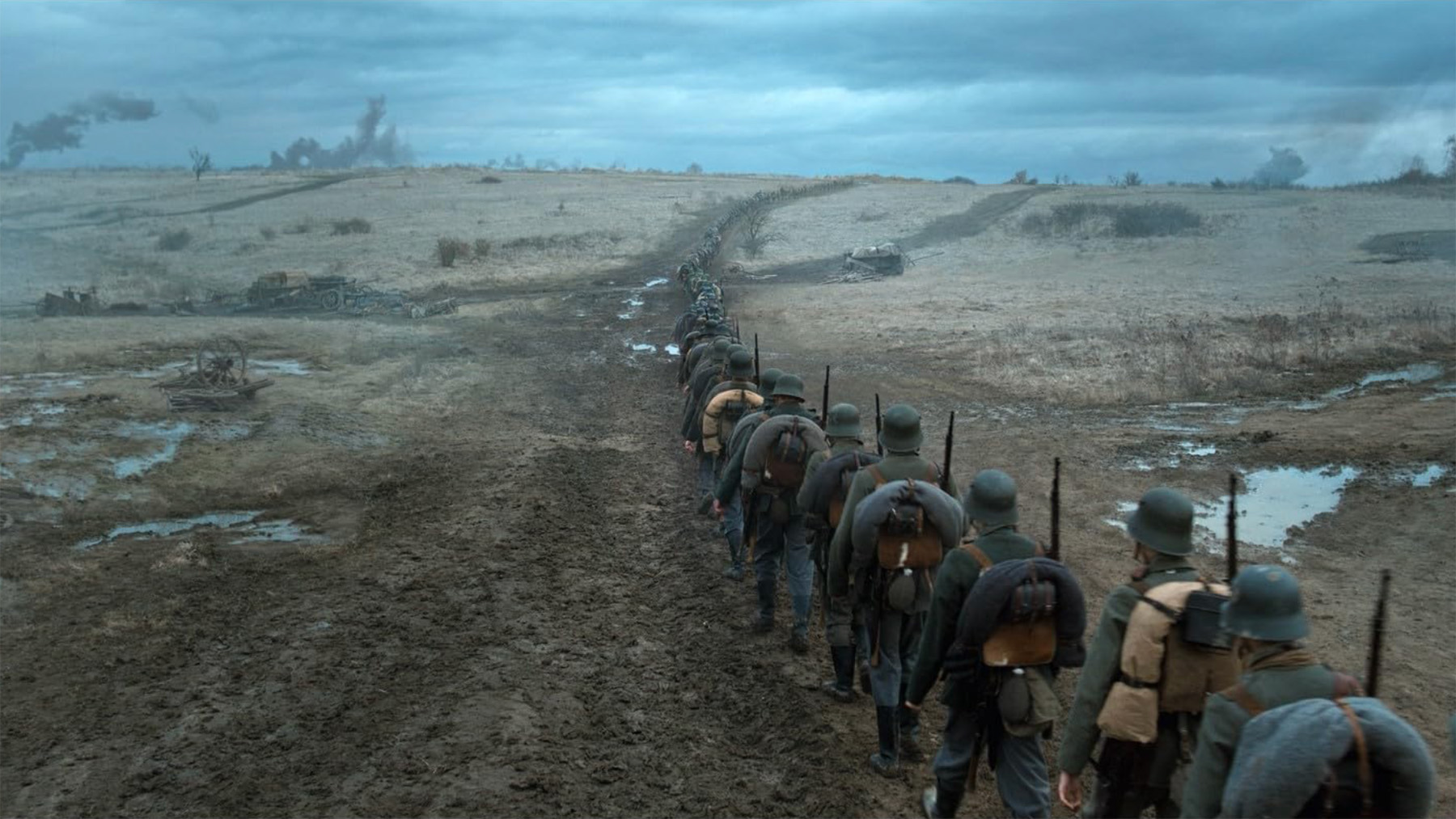 Актуальная волна интереса к роману пробудилась пару лет назад, когда на Netflix состоялась премьера немецкоязычной экранизации Эдварда Бергера (снявшего потом и оскароносный «Конклав»). В отличие от самой известной — первой, голливудской адаптации, — зрителю предстал натурализм общественной душевой, всё, от чего, как говорится, кровь стынет в жилах: лиловые портреты задохнувшихся, оторванные конечности, штыки, торчащие у кого-то из позвоночника, сапёрные лопатки да хоботы противогазов.