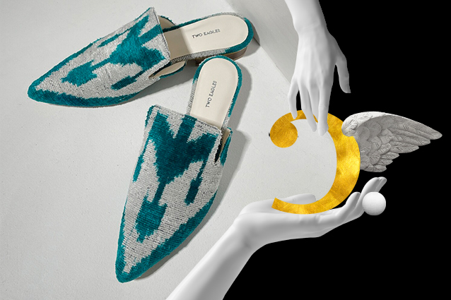 Тоуты и мюли на каждый день В прошлом году математик Мария Терпстра и менеджер Ума Рустамова запустили бренд Two eagles. Они популяризируют использование сотканных и окрашенных вручную тканей — аксессуары и обувь шьются именно из них. «Нам очень важно, что наша работа помогает сохранять старинную традицию изготовления тканей и поддерживает мастеров, которых с каждым годом становиться все меньше», — говорят авторы идеи. В основной коллекции бренда — вместительные сумки геометрической формы — тоуты (большие, средние и маленькие) и остроносая обувь без задника — мюли. Есть модели украшенные этническими принтами, и однотонные.