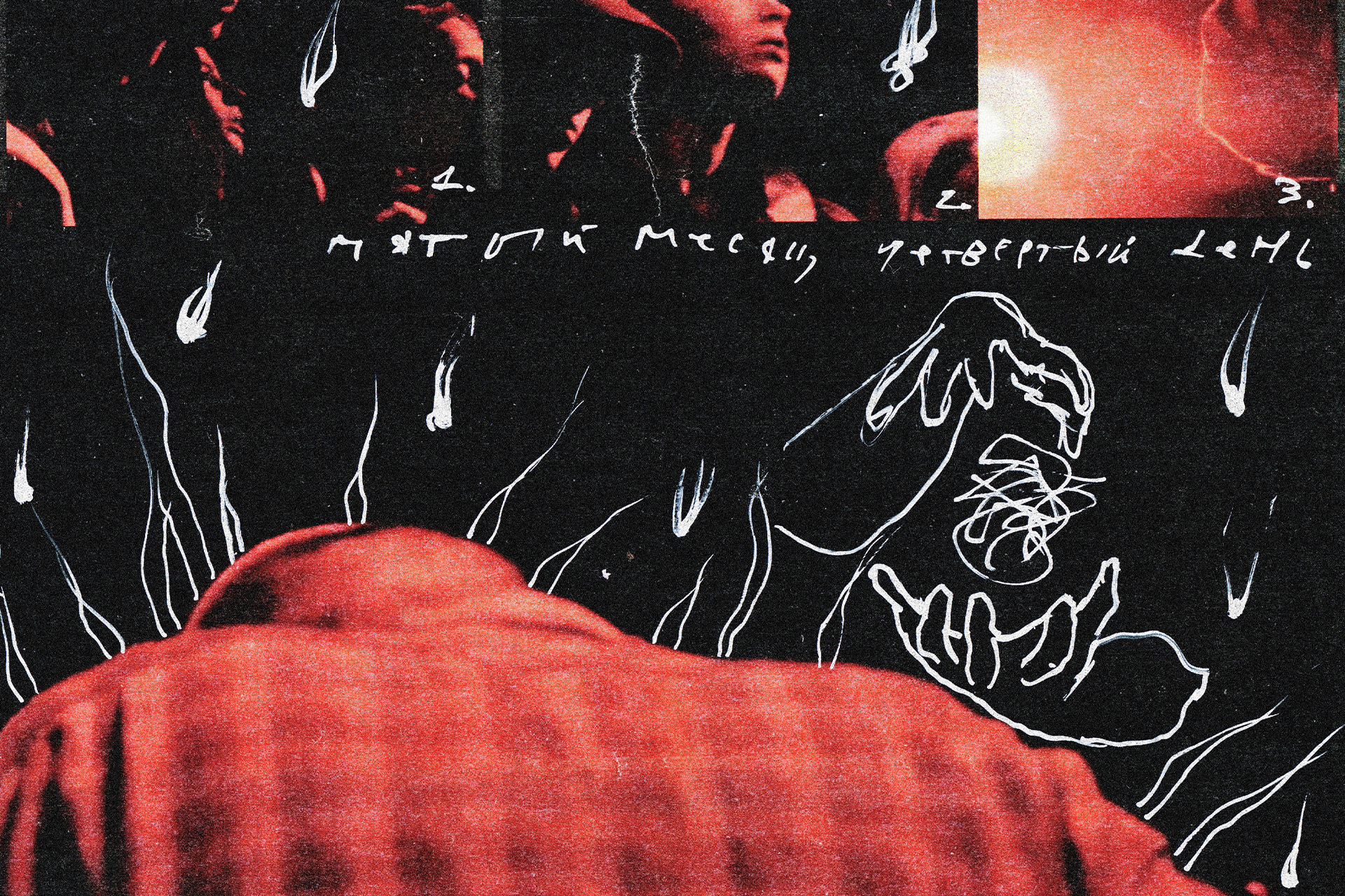 Ситников: Скапливаются какие-то наброски, ты их композиционно объединяешь в общую картину. До этого у Тошика (Антона Клевцова. — Прим. ред.) было много материала, из которого мы делали альбомы, поэтому выпускали много такого злого рейва. А это мой материал для театра был, и я отдал его Тошику, чтобы он надругался над ним. Но все равно в этих набросках остается что-то сентиментально возвышенное. Потом я еще раз над этим надругался, и все равно что-то такое осталось.