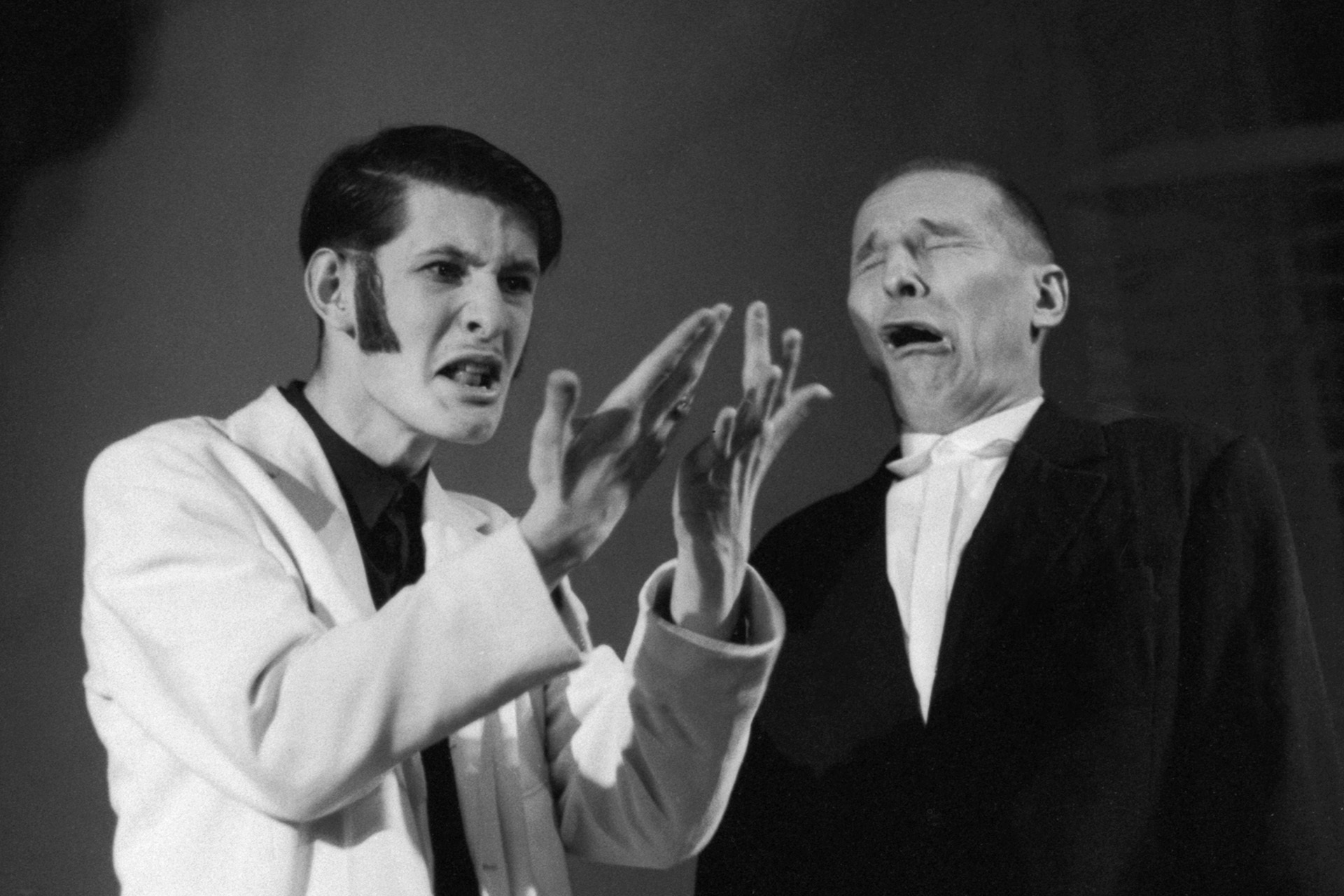 Мы перебрали несколько кандидатур, в том числе и очень серьёзные театральные имена — например, Александр Филиппенко. Брюнетом с самого начала был я, потому что Гинкас для меня эту роль и писал, а Лысый должен был быть постарше — и поопытнее. С этой постановкой нас приютил Роман Козак, главный режиссер Театра Станиславского, мы ему предложили попробовать Петра Николаевича — и он был не против. Повезло, что у Мамонова всю жизнь была очень тонкая интуиция: он почувствовал, что из этого может получиться что-то интересное, и согласился. Но я не думаю, что для него это было рискованно: как только он появлялся на сцене, зал вставал на уши. Первые пару лет на этот спектакль было невозможно попасть. Спекулянты продавали билеты к нам вместе с билетами в Большой театр за валюту.
