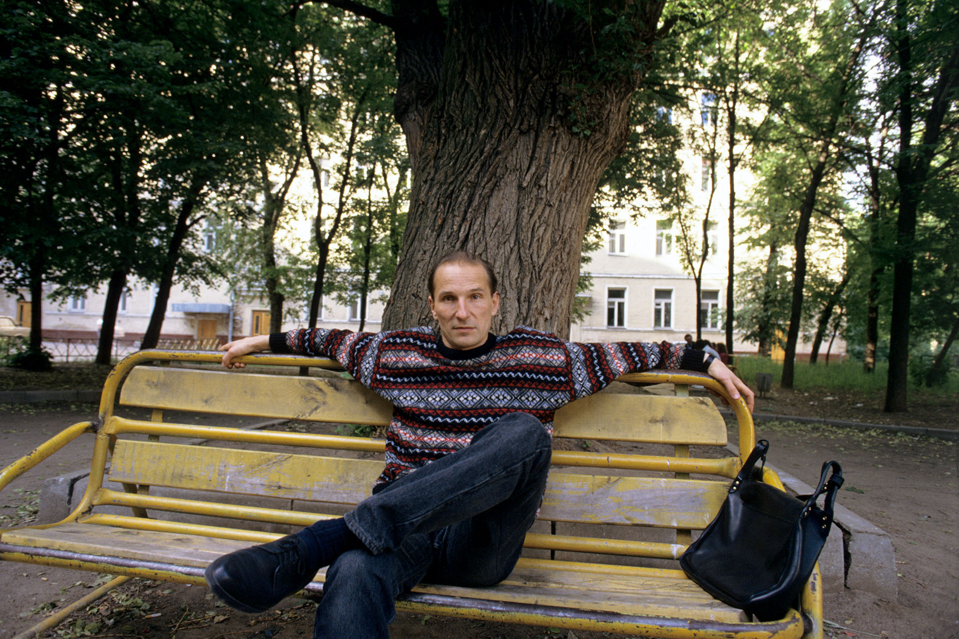 А потом пошли гулять: если спуститься с его участка, там река и сосны вековые. Бродили там. Потом все как-то отошли в сторону, и я вдруг посмотрел на Петра: он стоял на фоне своего дома, на него так красиво падал свет… Говорю: «Слушай, такой классный кадр! Можно я тебя сфотографирую?» — он этого очень не любил, а тут ответил: «Давай». Я сделал несколько фотографий, мы ещё немного поговорили…
