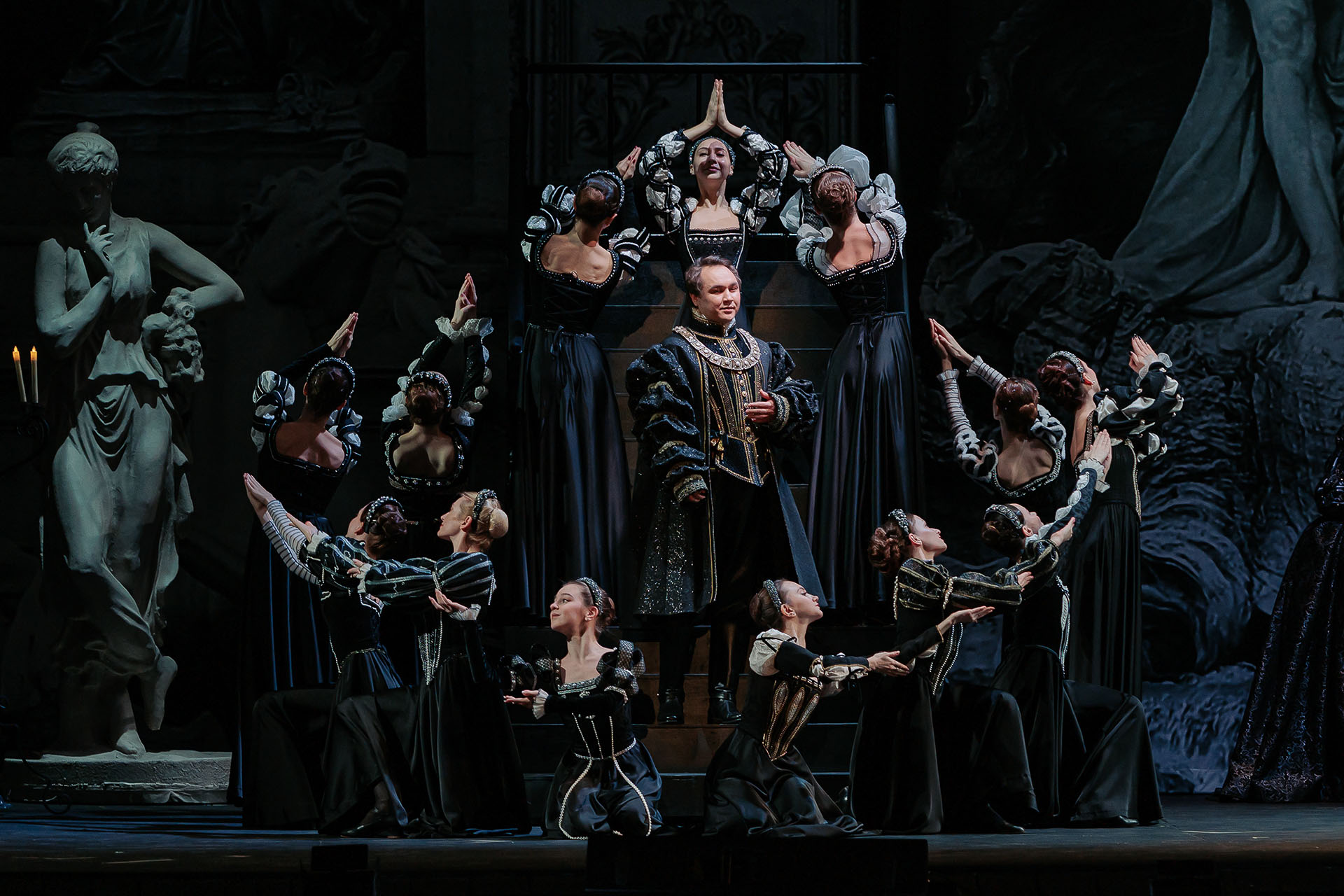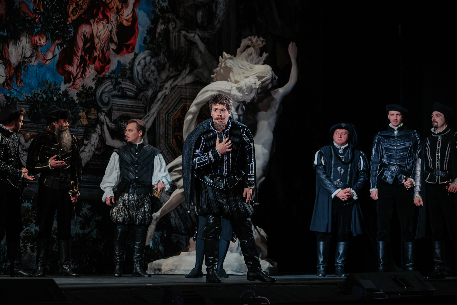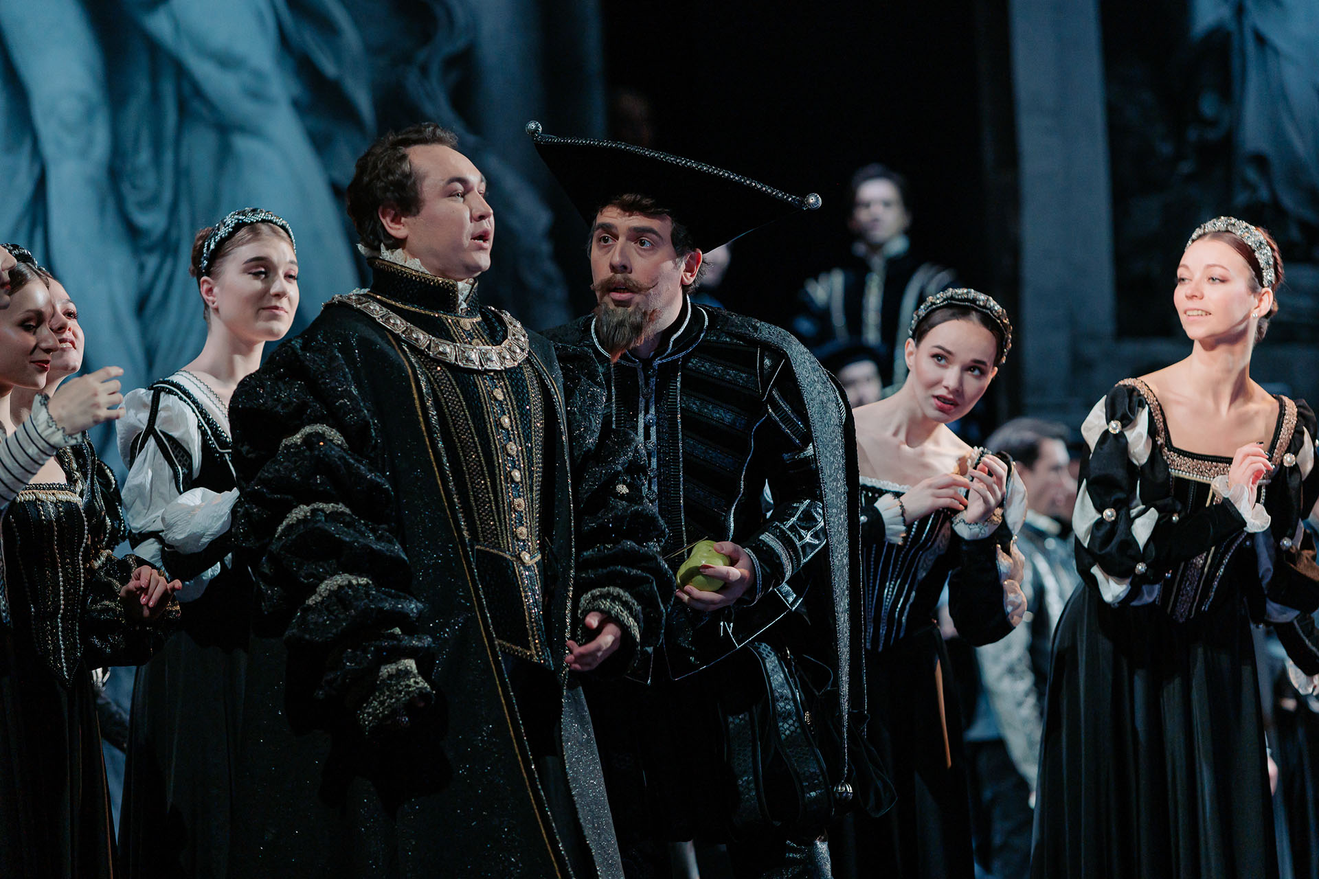 За полвека творчества Верди создал 28 опер — и многие из них по-прежнему остаются репертуарным стандартом. «Риголетто» же принято считать вершиной его искусства, одной из самых сильных опер мира. Верди часто называют «народным композитором»: его мелодии расходились, как хиты эпохи первых радиочартов. Арию Герцога из «Риголетто» о склонном к измене сердце красавицы вы уж точно слышали. Сергей Новиков не впервые работает с музыкой Верди и давно связан с нижегородской сценой. Здесь он родился, здесь впервые влюбился в оперу и с детских лет мечтал о режиссуре. Дебют, впрочем, случился лишь в 38 лет, в 2015-м. А в 2023 году — уже при нынешнем руководстве театра под началом Алексея Трифонова — он поставил на родной сцене свой самый дерзкий спектакль: «Онегина» в духе «Однажды в Голливуде», где Ленский остаётся жив. В интервью Новиков рассказывал, что его принцип прост: если произведение достаточно известно, можно позволить себе смелую интерпретацию; если же материал менее популярен, важно дать зрителю прикоснуться к первоисточнику без искажений. Несмотря на феноменальную известность «Риголетто», Новиков выбрал традиционное решение. Получился зрелищный, костюмированный театр (художник-постановщик Мария Высотская) — именно такой, какого ждёт публика, приходя на классику. Режиссёр отнёсся к Верди с вниманием и уважением: музыкальный текст сохранён полностью, сюжетная канва нетронута, время и место действия остаются в рамках оригинала. «Театр, в котором смотришь и отдыхаешь» — так режиссёр сам определяет любимый формат, и эта постановка отвечает его эстетике.