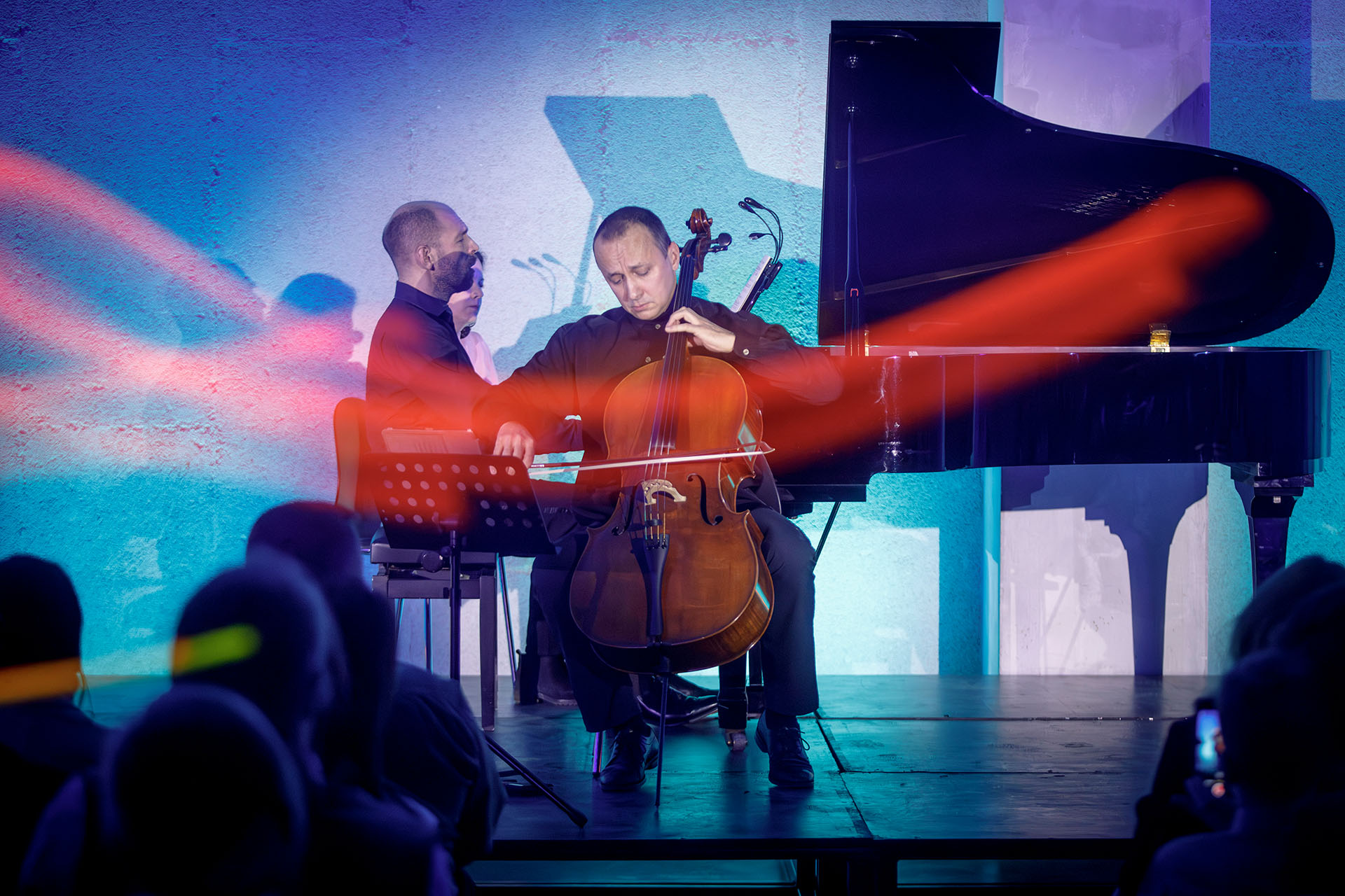 На следующий вечер в том же ДК «Рассвет» прошла своеобразная «битва» двух мастеров исполнительского искусства — пианиста Андрея Коробейникова и виолончелиста Развана Сумы. Если первый давно знаком столичной просвещённой публике — он регулярно участвует в проектах Бориса Андрианова и часто выступает на академических площадках, — то талант зарубежного гостя слушателям ещё только предстояло оценить. Организатор и художественный руководитель CellEAST Festival, первого виолончельного форума в Румынии, оправдал ожидания, фактически проведя мастер-класс по игре на виолончели.