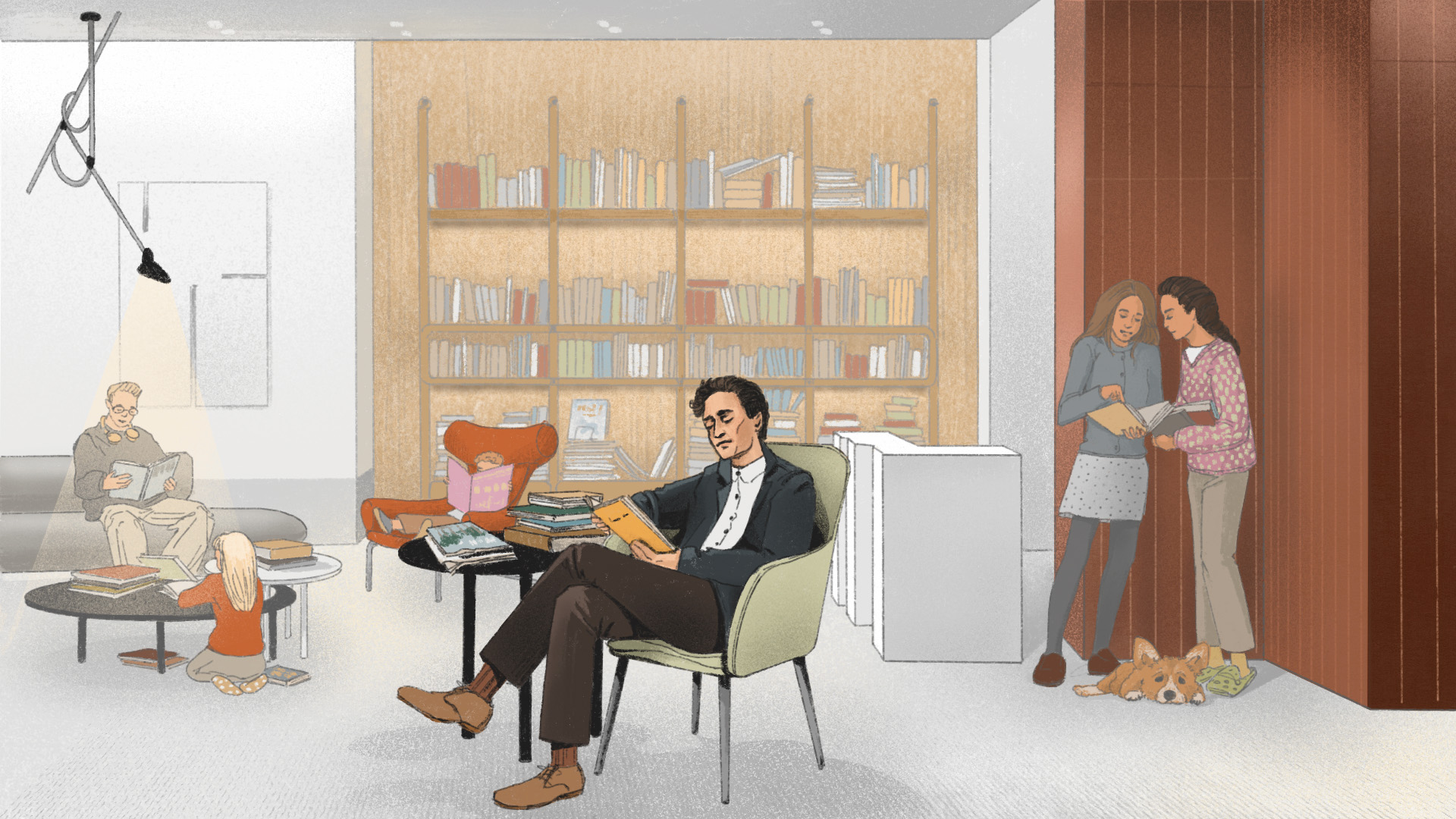 «Создавая концепцию, мы вообразили пространство библиотеки, в которой сами проводили бы свободное время. Посетителя библиотеки встретит стол с кураторской подборкой самых интересных и актуальных изданий — то, что, на наш взгляд, будет отличием проекта от привычных библиотек, выкладка, созданная по аналогии с нашим стеллажом “что мы читаем”, который нежно любят наши гости. Может быть, мы даже воспроизведём записки, которые можно встретить в нашем книжном, — объясняет Анна Канунникова, один из кураторов проекта. — Самый большой восторг в создании концепции для меня был в том, что можно вволю фантазировать и к моменту, когда настоящие стены будут возведены, библиотека уже станет практически живым существом».