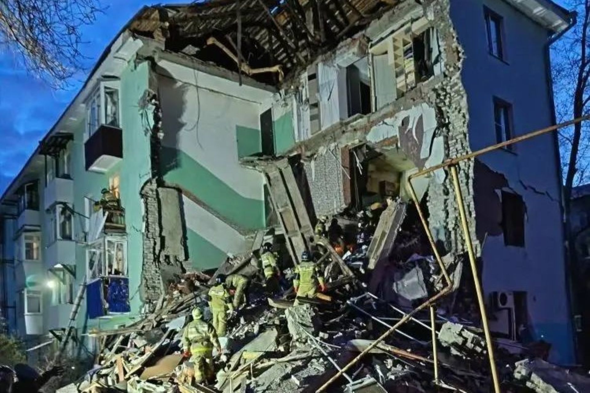 Обрушение произошло из-за атаки БПЛА. Жильцов эвакуировали. Из-под завалов спасли четырёх человек, включая ребёнка. По предварительным данным, под обломками могут оставаться два человека, один из которых — несовершеннолетний. Пострадали 11 человек, в том числе двое детей.
