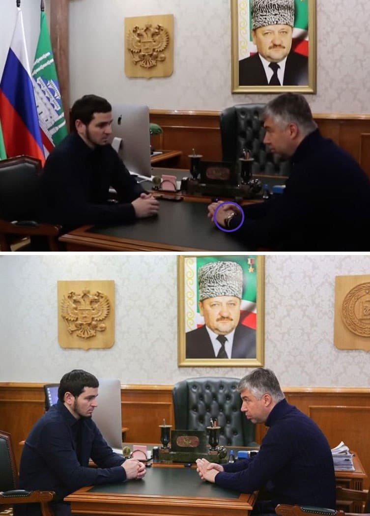 Глава Ростова-на-Дону Алексей Логвиненко опубликовал фото со встречи с мэром Грозного Хас-Магомедом Кадыровым у себя в инстаграм. С помощью ретуши с фотографии были убраны дорогие швейцарские часы на левой руке Логвиненко, обратило внимание издание «Блокнот Ростов»