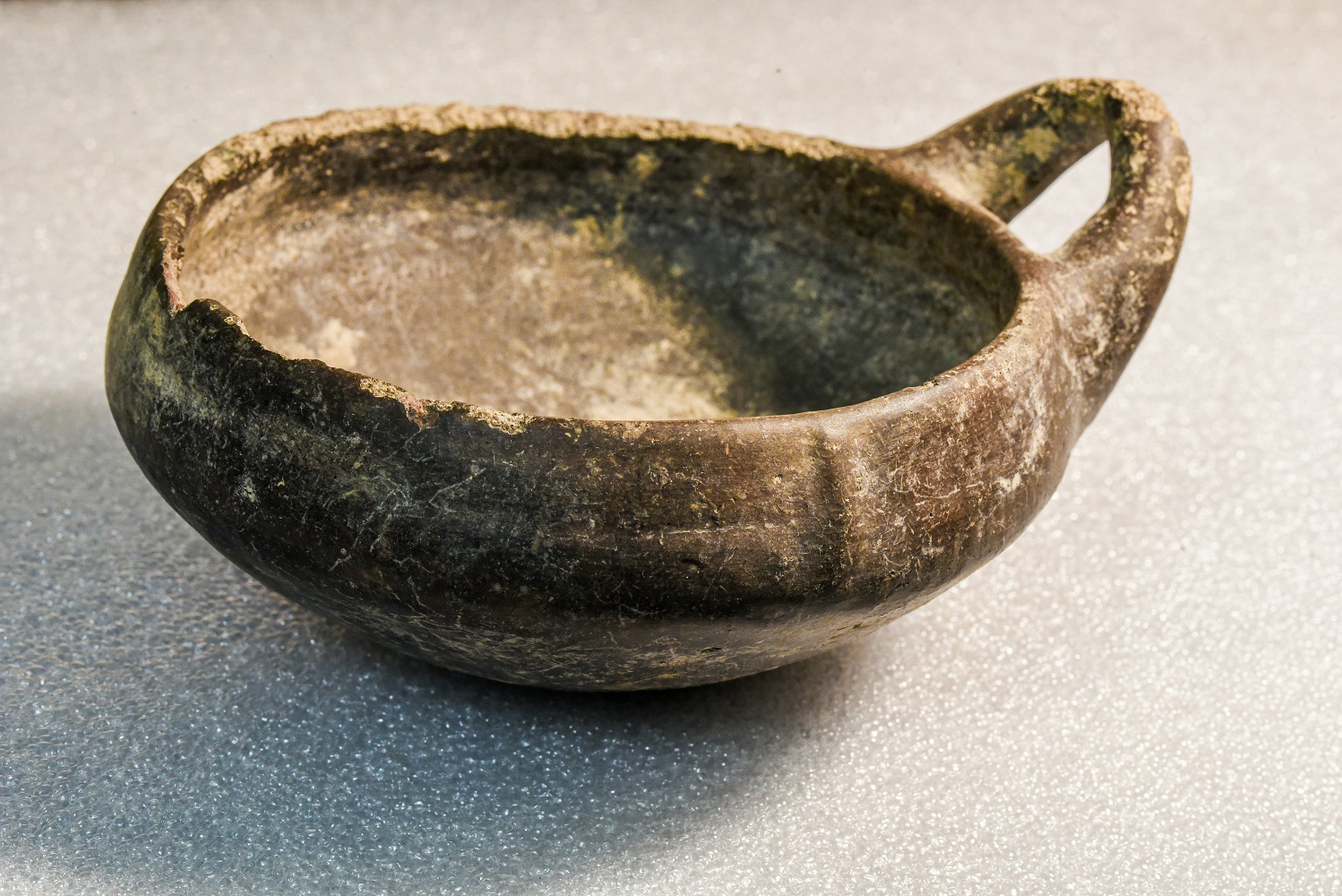 Мередит обнаружила абстрактные узоры на обратной стороне сосуда из частной коллекции. На изделии, вырезанном из цельного стеклянного блока между 300 и 500 годами нашей эры, присутствуют ажурные формы — ромбы, листья и кресты — вместе с пожеланием долгой жизни владельцу. Исследовательница проследила аналогичные маркировки на других резных сосудах, установив их связь с визуальным языком стеклоделов того периода.