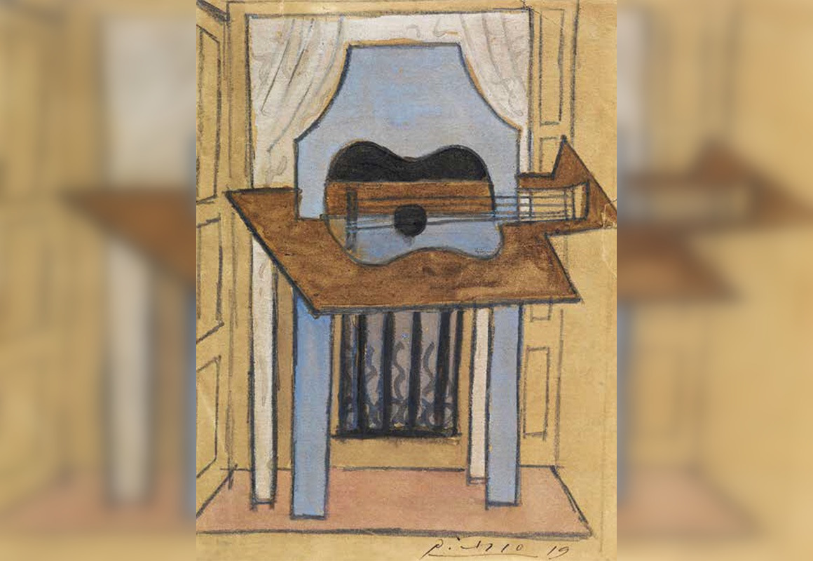 «Натюрморт с гитарой» относится к раннему периоду кубизма. Пикассо написал его в 1919 году. Полотно хранится в частной коллекции и застраховано на сумму 600 тысяч евро.