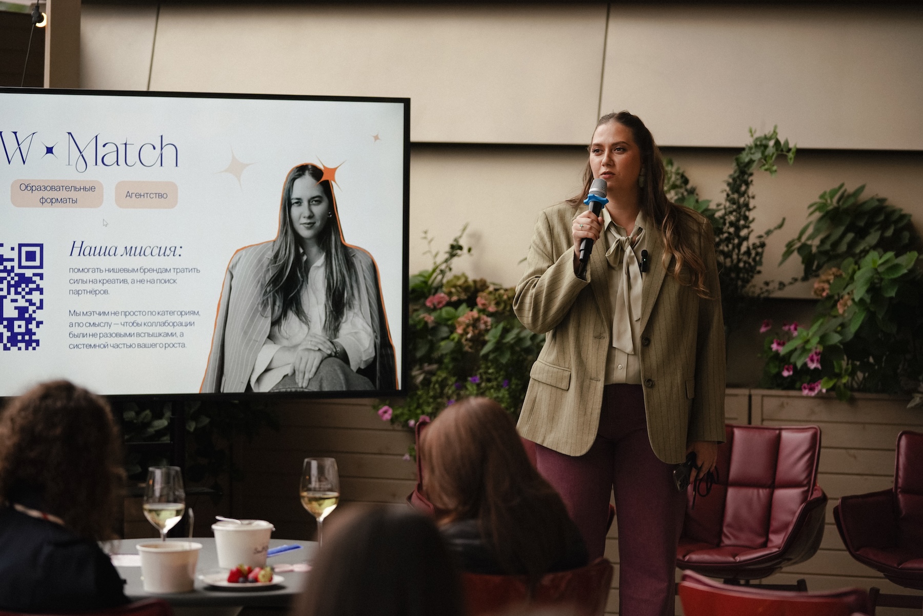 Партнером деловой программы вечера выступил сервис карьерного коучинга *insight, основанный Дарьей Кировой и Натальей Роговой. Он помогает подобрать профессионального коуча и разобраться со сложными задачами в работе, бизнесе и жизни. В рамках вечера сервис провел public talk «Коллаборации как стиль жизни в бизнесе и личном». Спикеры, в числе которых СЕО W2W Match Лиза Слёзкина, Дарья Затравкина («Закатный бранч»), Алёна Хайдукова (nōtem), Надежда Божкова (Viva La Vika, Choux), поделились личными кейсами, как в период нестабильности и перестройки маркетинговых каналов совместные проекты помогают брендам усиливать влияние, находить новые точки роста и создавать ценность для всех участников. Модератором выступила Дарья Кировa.