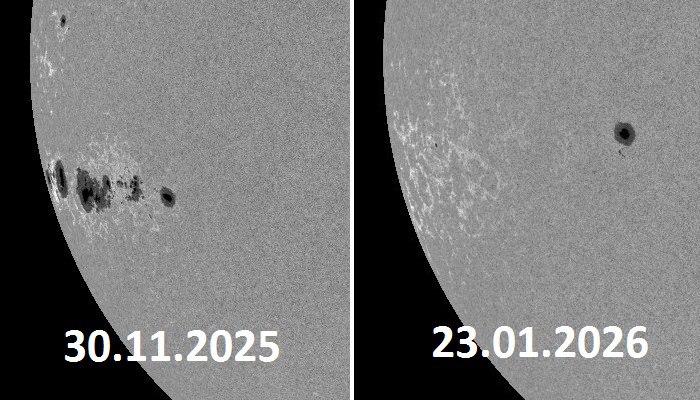 Одна из самых масштабных групп солнечных пятен, наблюдавшаяся в прошлом году, полностью исчезла с видимой стороны звезды. Об этом сообщили в Лаборатории солнечной астрономии ИКИ и ИСЗФ РАН.