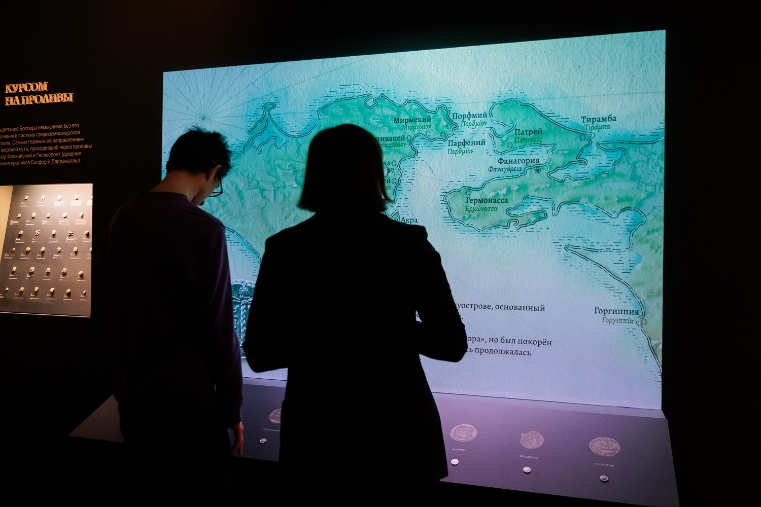 В экспозиции представлены золотые, серебряные и бронзовые монеты древних городов Таманского полуострова, Крыма и других регионов. Среди них — редкие единичные экземпляры, шедевры античной чеканки, скифское и древнегреческое золото. Партнёры выставки — Эрмитаж, Государственный исторический музей, ГМИИ им. А. С. Пушкина, частные коллекционеры — предоставили изображения богов, древнюю керамику, ювелирные украшения и детские игрушки.