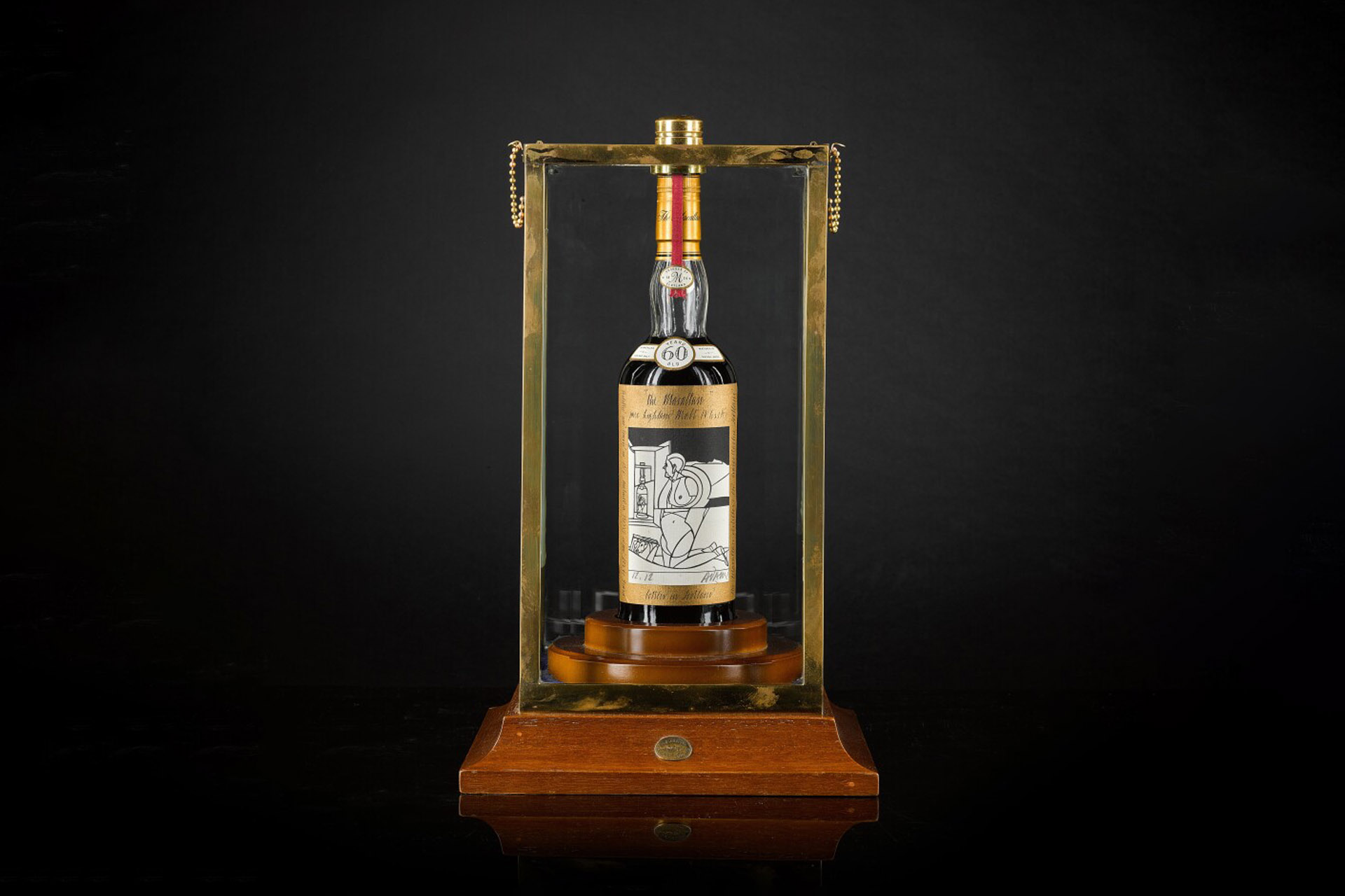 Виски Macallan урожая 1926 года созревало 60 лет в дубовой бочке. В 1986 году напиток разлили в 40 бутылок. Изначально виски не было доступно для покупки, однако некоторые бутылки достались топ-клиентам Macallan. Этикетки для первых 12 бутылок создал британский художник и автор обложки альбома The Beatles Питер Блейк. В 1990-х еще дюжину расписал итальянец Валерио Адами — именно к этой коллекции относится проданная бутылка. Другая идентичная, вероятно, разбилась во время разрушительного землетрясения в Японии 2011 года.