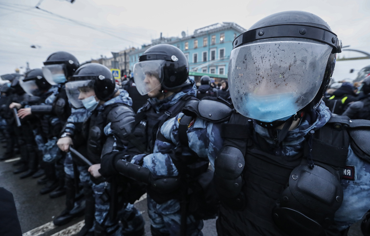 23 января во время митингов в поддержку арестованного политика Алексея Навального петербургское издание «Фонтанка» опубликовало видео, как женщина пытается спросить полицейских, зачем они задержали протестующего на площади Восстания. Один из силовиков отвечает ей ударом ногой в живот, из-за чего женщина падает и ударяется головой об асфальт.