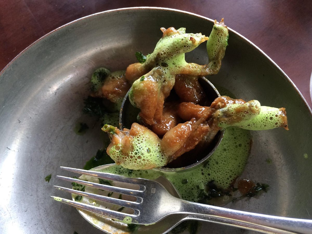 В продолжение последних нескольких столетий из меню французских ресторанов лягушка не исчезала никогда. И не только в виде традиционных лягушачьих лапок, жаренных в масле с чесноком, но и в виде рецептов высокой кухни.