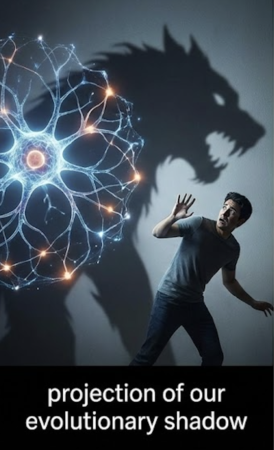 Страх, что ИИ поработит или уничтожит человечество, представляет собой, по существу, проекцию на ИИ хищнически-доминирующих функций естественного разума, отягощённого наследием многотрудной борьбы индивидуального организма за овладение средой. Мы приписываем ИИ наши худшие свойства — жажду власти, агрессию, коварство, желание поработить, — словно новый Чингисхан надвигается на человечество с ордой роботов.
