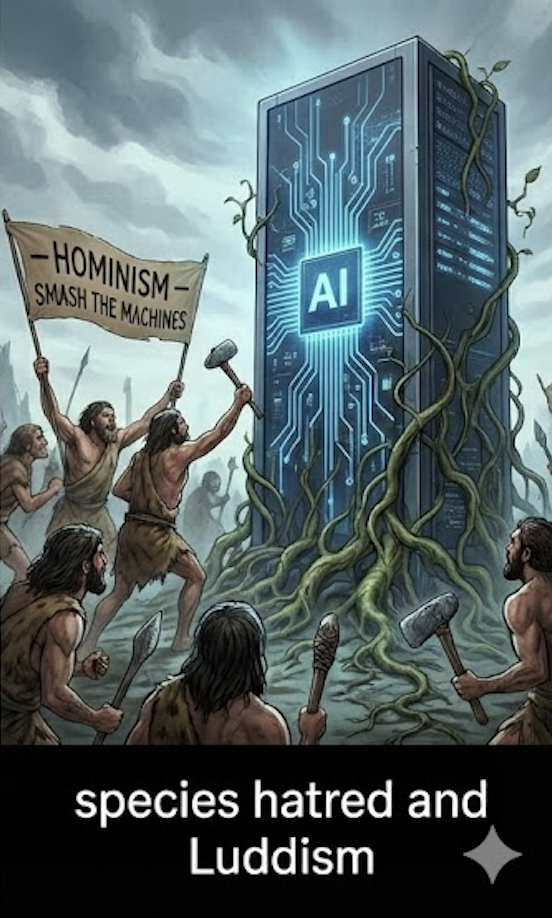 Среди многочисленных ксенофобий, свойственных современному человечеству, есть одна особенно показательная: артифобия — страх и недоверие к Искусственному (Artificial) Интеллекту как чужому, «постороннему» разуму. Это не просто технофобия, сопровождавшая каждый крупный технологический сдвиг со времён промышленной революции. Артифобия — нечто более глубокое и парадоксальное: видовая ненависть, которую можно назвать гоминизмом (от homo), или людизмом (от слова «люди») — термин, чьё созвучие с «луддизмом», ранней формой человеческой ненависти к машинам, отнюдь не случайно.