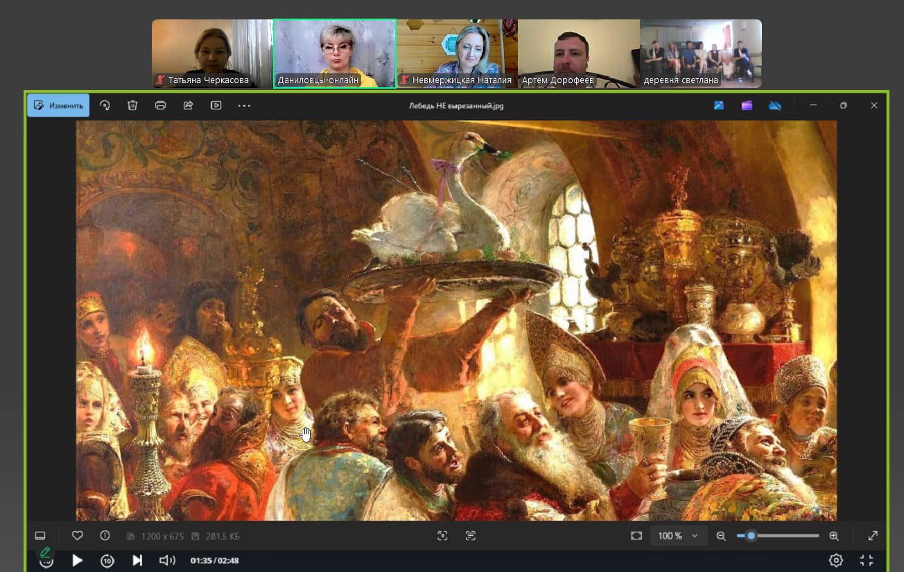 А дальше мы перешла к Царевне-лебеди, и тут ребята сразу подхватили: «Пушкин!», и я очень обрадовалась тому, что они это знают. Говорю, да, совершенно верно, Александр Сергеевич Пушкин, сказка о царе Салтане. Там есть Царевна-лебедь, она — одна из главных героинь.