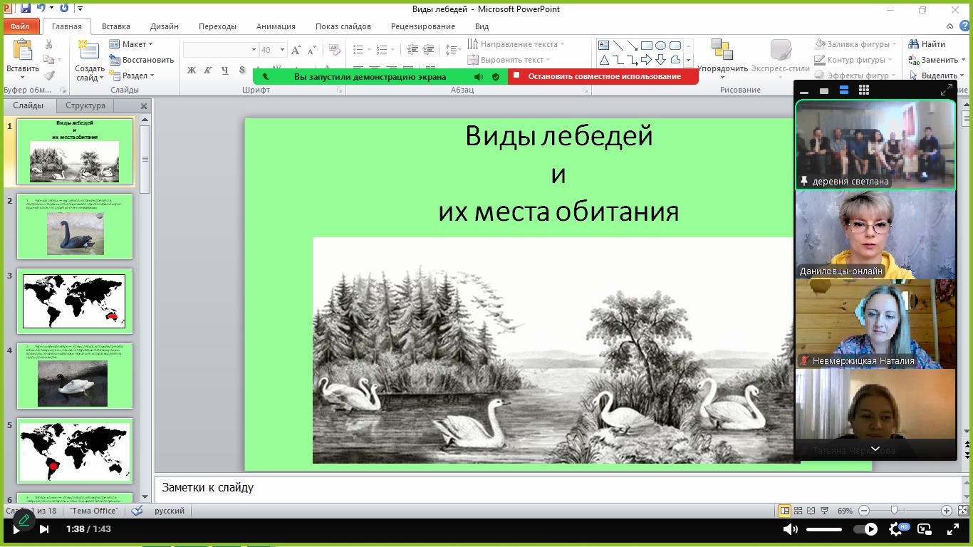 Затем мы заговорили о том, что лебеди — очень красивые птицы, и я предложила просто ими полюбоваться. Я показала презентацию с фотографиями, и во время демонстрации было слышно, как ребята замирали, вдохновлённые и восторженные. А подопечная Ульяна сказала, что в Летнем саду есть лебеди-стражники. Их так называют, потому что они живут там очень долго.