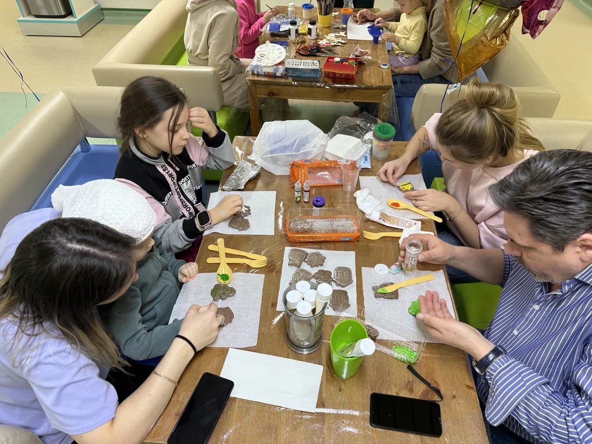 Возраст — от нескольких месяцев до 18 лет включительно. Но на наши волонтёрские посещения приходят чаще всего ребята от 5 лет до 12. И, соответственно, ориентируемся мы именно на этот возраст, хотя и 18-летние ребята с радостью иногда приходят играть в настольные игры. А малыши больше увлекаются творческими мероприятиями: рисование, лепка из пластилина. Пластилин — это вообще отдельная история, потому что в Бурденко его за год уходят тонны. Даже если у посещения есть какая-то тематика, бывает, что ребята просто приходят и говорят: «А мы сегодня хотим полепить ферму!».