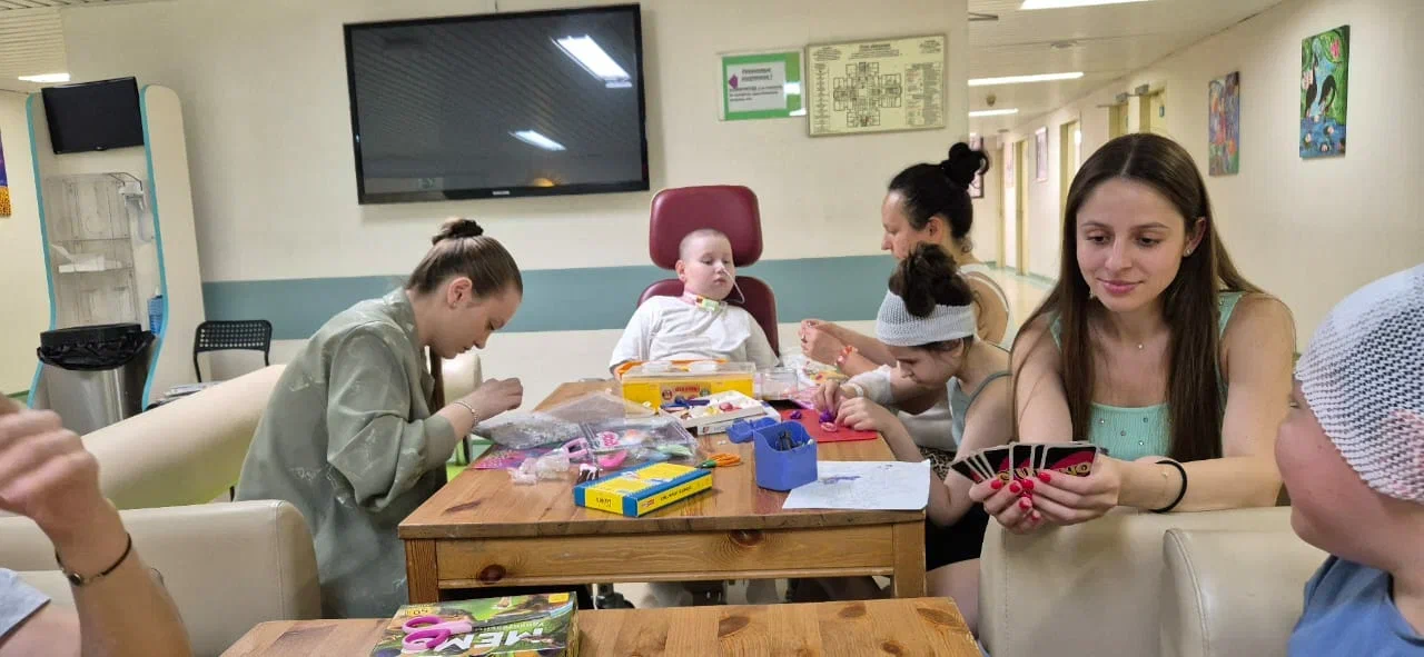 Часто дети сами дают идеи для посещений. Одна из самых популярных игр — «Уно». Эта игра заходит абсолютно всем детям, начиная от четырёх лет. При этом она помогает объединить всех ребят вместе. У нас два детских отделения, и есть правило самой больницы, что дети из первого отделения не могут заходить во второе и наоборот. И они могут пересекаться только в общем холле, где мы как раз и собираемся. И вот за игрой, за всякими поделками они и знакомятся. Дети могут вместе пообщаться, подружиться и потом встречаться, что-то делать и играть, пока нас нет.