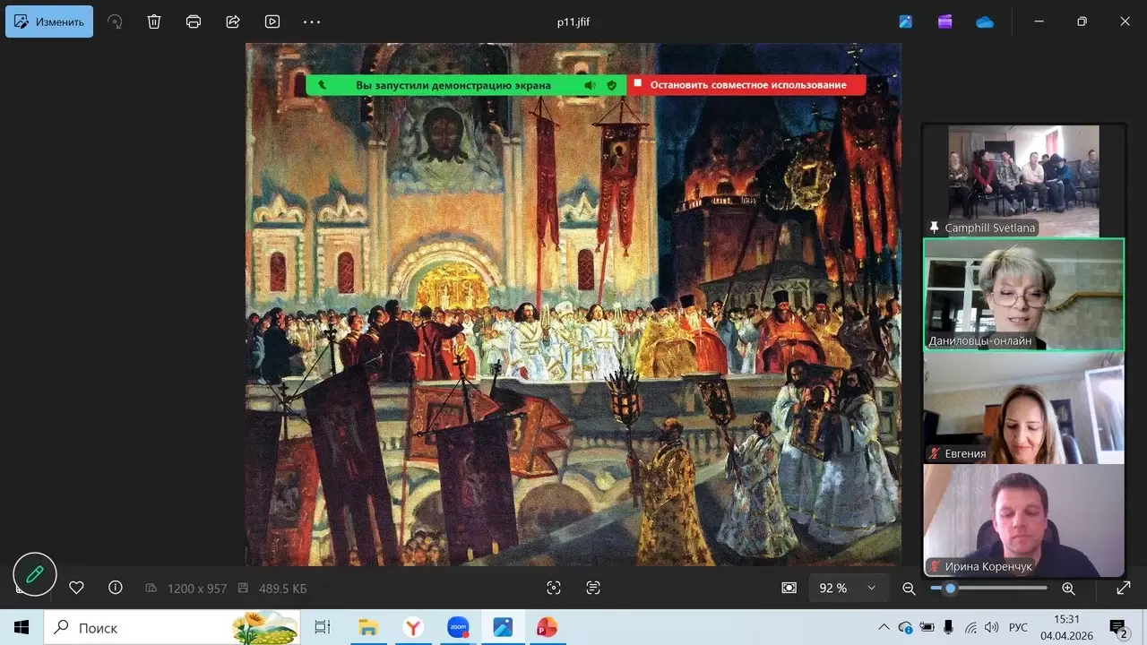 Потом мы предложили послушать рассказ Алексея Ремезова «Пасха». Любое произведение интересно слушать с картинками, но вот к этому рассказу их не было. Поэтому мы иллюстрировали его сами. Первые три картинки сделал искусственный интеллект, но потом он не справился, и мы обратились к русской живописи. Наши художники очень любили праздник Пасхи, и мы смогли найти картины, иллюстрирующие все, что описано в рассказе. А он повествует о девочке 12 лет, которая жила в городе в пансионе и очень ждала приезда домой на Пасху. Она вспоминала самые близкие сердцу моменты из своей деревенской Пасхи и дождалась возвращения в родное село как раз на праздник. Это описано в рассказе очень трогательно и душевно.