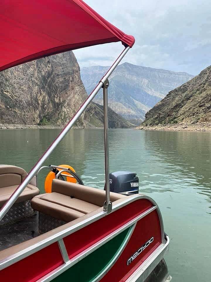 По Сулакскому каньону надо плыть не на реактивной скорости, когда ветер срывает ресницы, косынки и кепки, спутывает волосы и впечатления. Нет! Не чтобы катер то задирал нос, то жестко падал пузом на воду, как на аттракционе. Ну, камон — это слишком простые и короткие эмоции от такого исключительного места. (И плохой водитель, который рискует вашей спиной). Не будьте туристом, будьте путешественником — погружайтесь! Мы проплываем там, где горцы ходили пешком или ездили на лошадях.