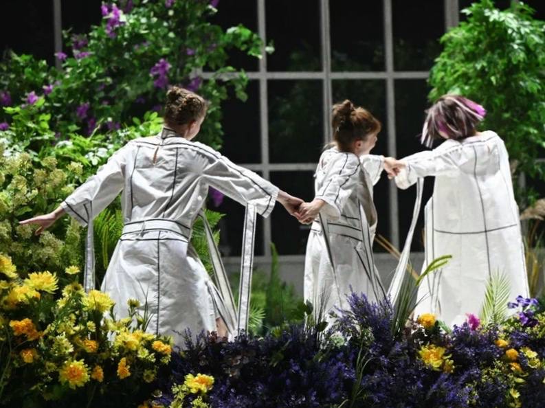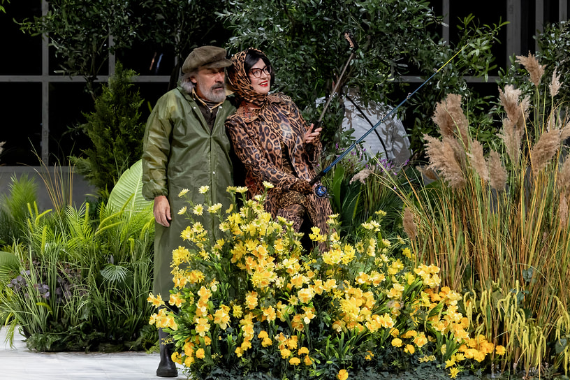 Текст прикидывается абсурдным и смешным, при этом в каждой реплике — драма. Сказано же — мистерия, мистерия и есть. И как мы все помним, это жанр, основанный на религиозных сюжетах. Но сидишь, вслушиваешься, и что-то такое начинаешь смутно узнавать. Где-то ты это всё уже слышал, не раз и не сто. Реплики запросто бьются на самостоятельные мемы, но мемы особенные — с драматургическим сбоем. Любовь это, это… Одну женщину бросил любовник, и она вынула из груди импланты, которые он уже оплатил и... Я — простая русская женщина с непростой кредитной историей. Папа героя — самый народный мужской персонаж — нарцисс. Он так выглядит, он так говорит и поступает. Его появление подготовлено с эффектом: тут захожу я весь в белом. Феерично, хотя он не в белом, но в сером, и что за шикарные пальто, костюмы, шляпки у пары родителей! Какое-то портновское совершенство. — Что ты считаешь? — Я считаю деньги. Мама героя — настоящая инста*-фифа, красотка, повторяющая: я же не виновата, что меня все хотят! Смотришь и думаешь — действительно не виновата. Просто звезда. — Дай мне денег. — Сколько? — Все.