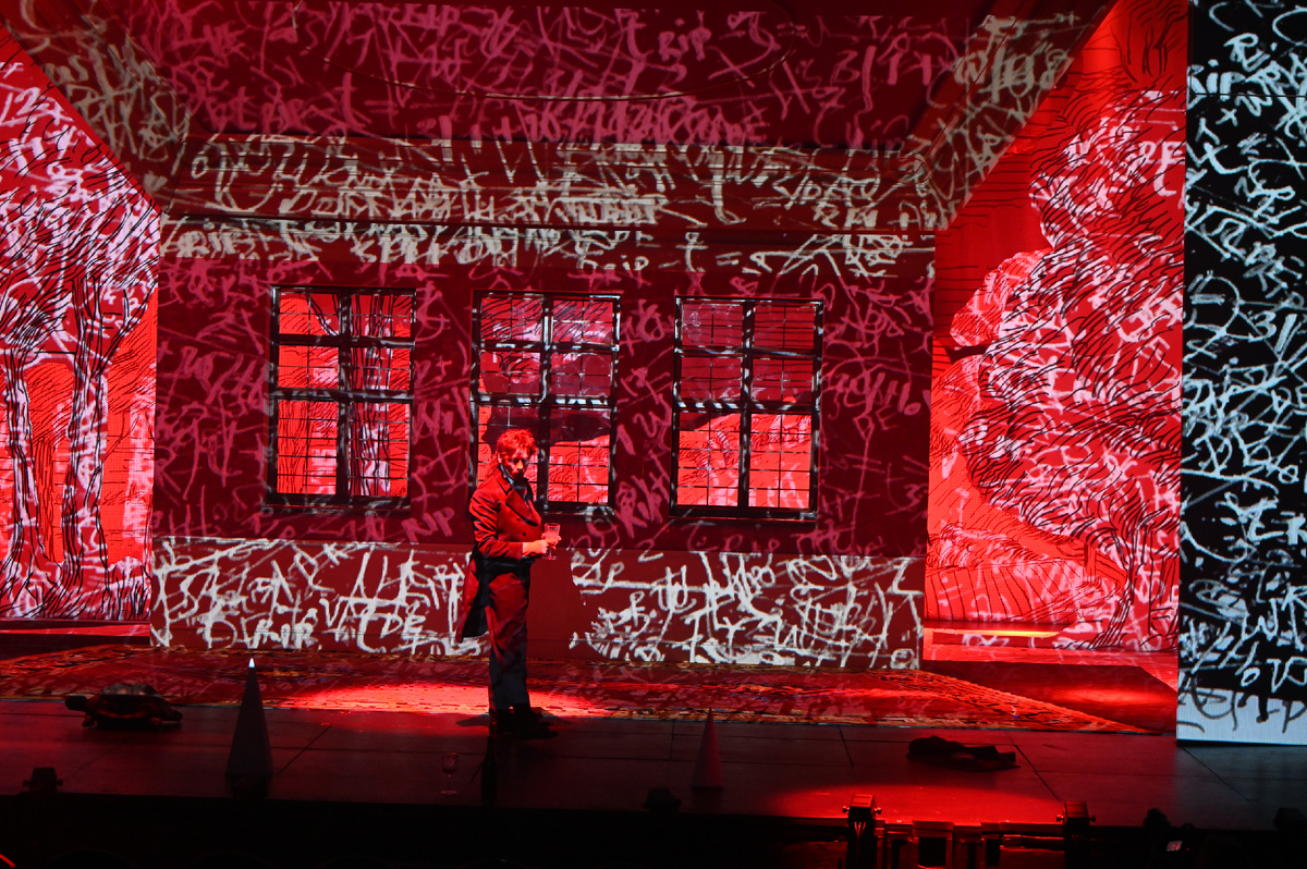 Создатели спектакля, видимо, не надеялись, что кто-то сам разберётся во всех плоскостях и конфликтах, так что использовали современные технологии, чтобы зритель получал информацию по привычным каналам. Например, в виде текста во весь экран, графических изображений (немножко в стиле «Теории большого взрыва») и научно-просветительской лекции с элементами огненного шоу.