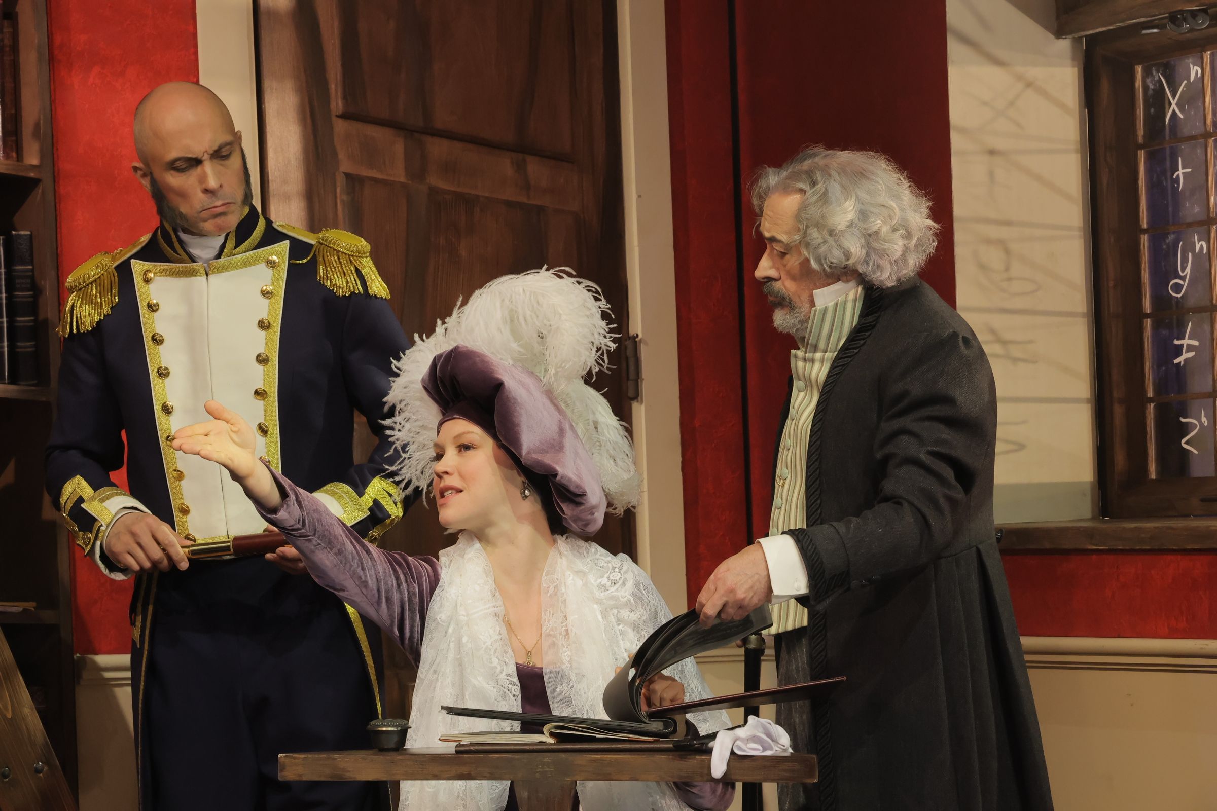 Какой визуал! В декорациях есть что-то рождественское, диккенсовское, узнаваемое, обещающее удовольствие и уют. Вся эта английская палитра, библиотека, которая не изменилась за 200 лет, байрономания… А костюмы — исторически-достоверные, элегантные, роскошные. Фасоны, ткани, перья! Детали, вроде оправы Ханны, носков на подтяжках Бернарда, гольфов Валентайна — они решают.