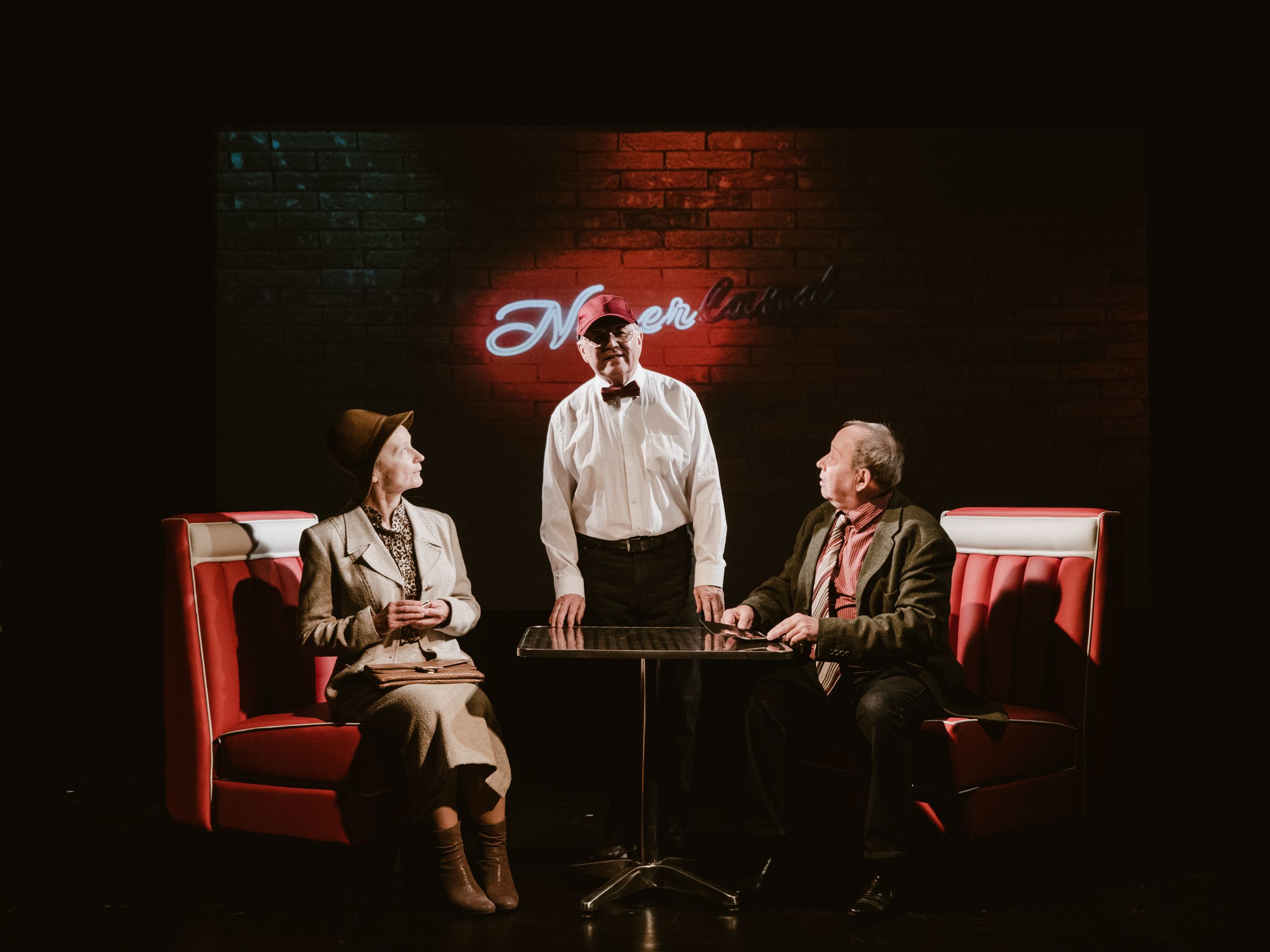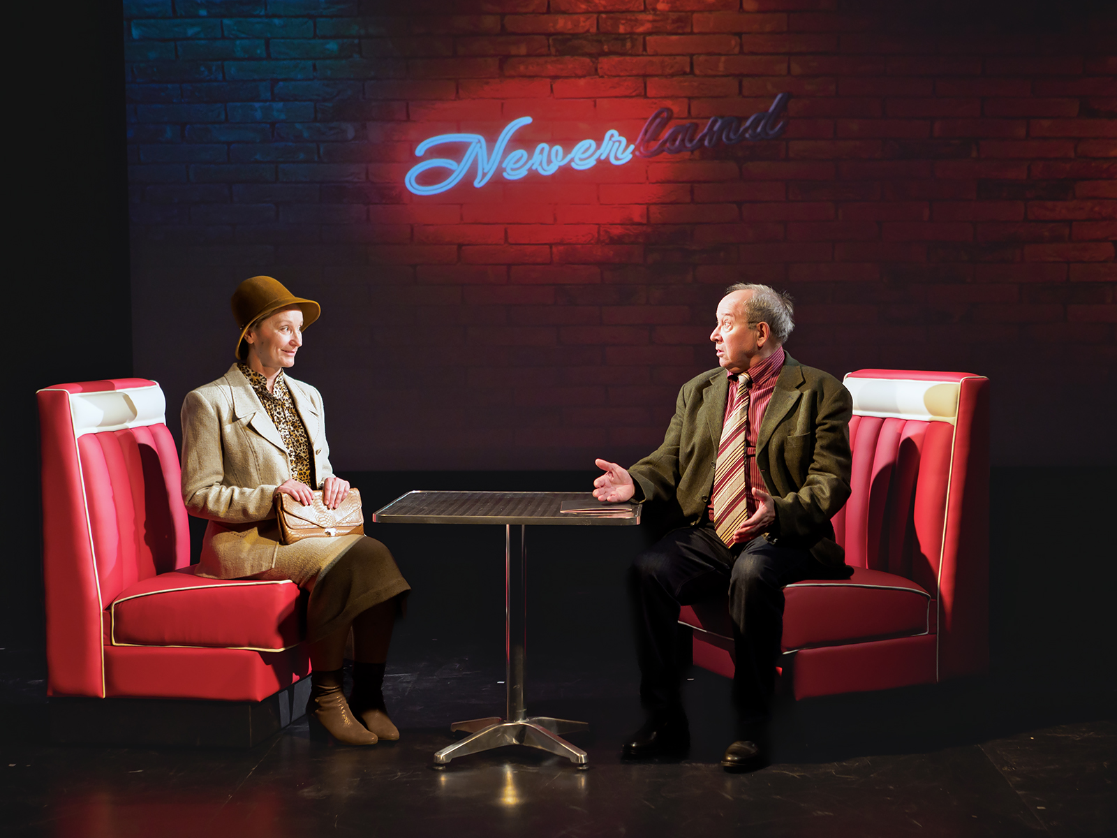 В этой последней части три истории сходятся. Прислуживает пришедшим на свидание Алевтине и Аркадию официант, в котором зритель без труда узнает героя из первой новеллы. Не уехал он ни в какой Мичиган. Кафе носит название Neverland – крупными люминесцентными буквами светится оно на заднике. Это отсылает нас к истории о Питере Пене, мальчике, который жил на острове, где дети никогда не взрослеют. А взрослеют ли герои этой пьесы?