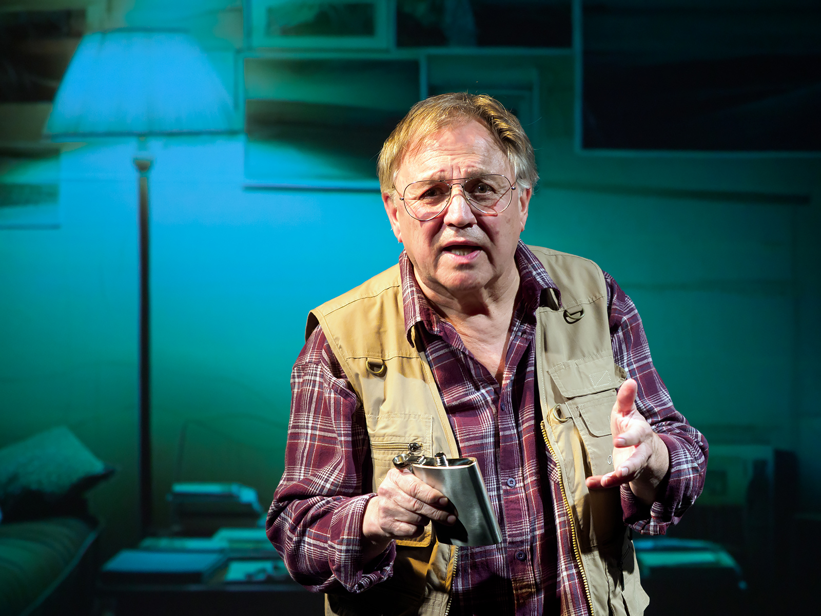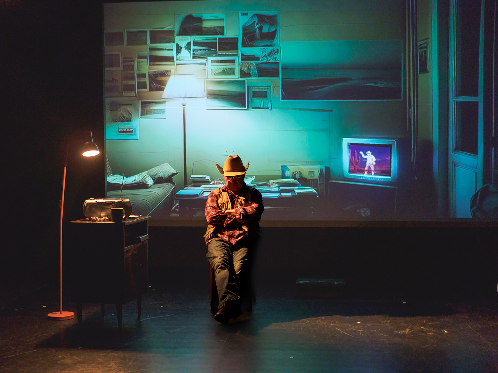 Первая — «Скромный американец» — моноспектакль. Герой (его играет известный актер Камиль Тукаев, народный артист РФ, много лет рука об руку работавший с Михаилом Бычковым в Камерном театре) рассказывает нам о своей многолетней мечте, которой, судя по всему, так и не суждено сбыться. Он пытается выиграть в лотерею американскую грин-карт, в его грезах он живет в штате Мичиган, который представляется ему самым лучшим местом на земле. В скромном пространстве своей комнаты (художник-постановщик Михаил Бычков): стол, заваленный старыми журналами, стул, кровать, кресло, допотопный магнитофон, просиженное кресло, — герой мечется словно зверь в клетке. Тем не менее силой воображения ему удается перенестись в другие миры: на экране мелькают кадры (видеохудожник — Алексей Бычков). Он видит себя на берегу озера Мичиган, прогуливающимся вдоль улиц в заветном городе, где все устроено идеально, даже климат самый что ни на есть подходящий. Он вспоминает свое прошлое, свою любимую красавицу жену Лизу, так рано погибшую (всего один год прожили вместе), учебу в институте на филолога, своего армейского товарища (всего один год дружили).