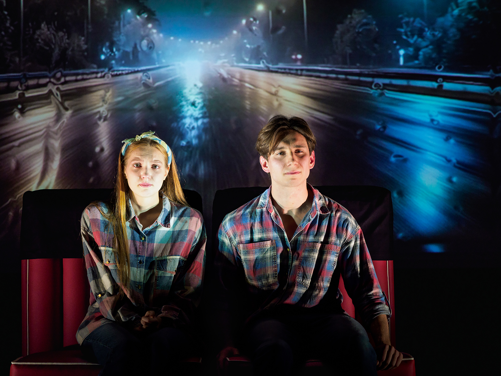 Вторая история — «В начале была Деталь»: про двух подростков (Анастасия Павлюкова, Константин Гунькин — совсем молодые артисты), которые едут из ниоткуда в никуда. Их покачивает в красных автомобильных креслах, на экране на заднике видна проселочная дорога, начинает идти дождь. Она — гуманитарий, он — инженер. Они говорят на разных языках, не понимают друг друга, но их объединяет одно общее желание — скрыться, убежать от погони (неизвестно кто за ними гонится), страх быть настигнутыми поселяется в них обоих. Эта самая странная новелла их трех. Она даже в чем-то мистическая, но действительность, хоть и размытая, очень похожа на саму себя. Она (у персонажа нет имени) ищет помаду, чтобы унять нервы. Он продолжает вести машину. Куда заведет их эта дорога? Когда и где закончится это путешествие? Ведь у него нет конечной цели. Эта история про запутавшихся молодых людей, которые не знают, как применить себя в жизни, за что взяться и куда деться.