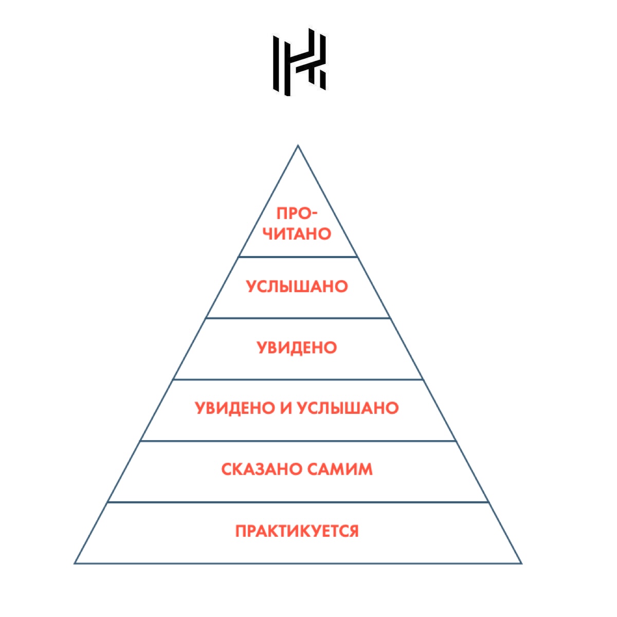 Ученый представил идею метафорического «конуса обучения», утверждая, что чем более преобразованы и «присвоены» знания, тем лучше они запоминаются.