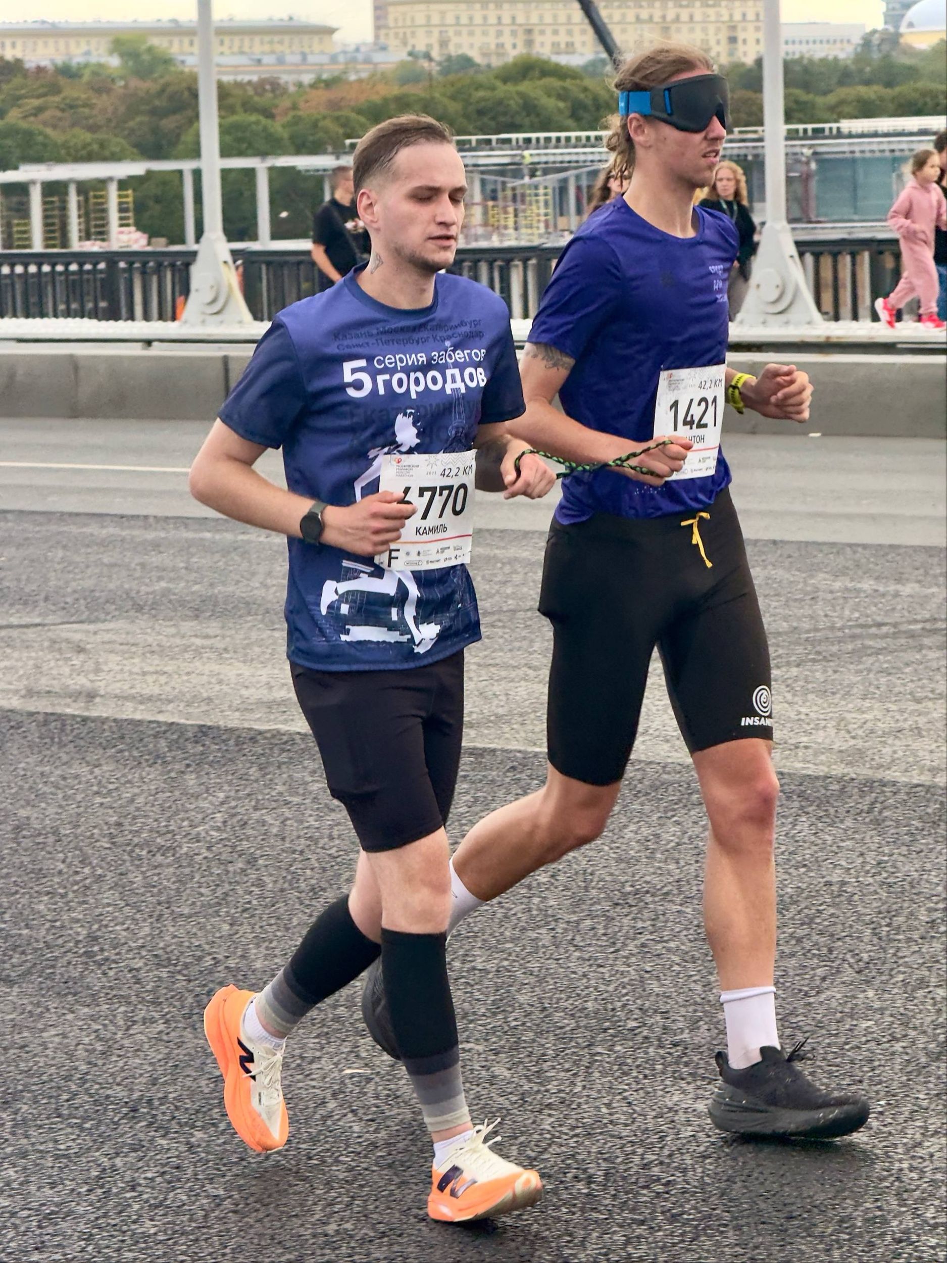 «Что чувствует незрячий человек? Пожалуй, только сам незрячий знает это полностью, но я прочувствовал нюансы. Я был очень раним, воспринимал все столкновения и притирки на личный счёт. А потом понял, что люди просто не замечают тебя, заняты своими делами. Я остро ощутил потребность в дополнительной опоре» — делится впечатлениями триатлет Антон Ионов. На прошедшем в минувшие выходные Московском Марафоне Антон пробежал «вслепую» (в повязке на глазах) 42 километра. Его волонтером-лидером выступил бегун, футболист Камиль Хасанов, без такого сопровождения Антон как «незрячий марафонец» не смог бы самостоятельно преодолеть дистанцию.