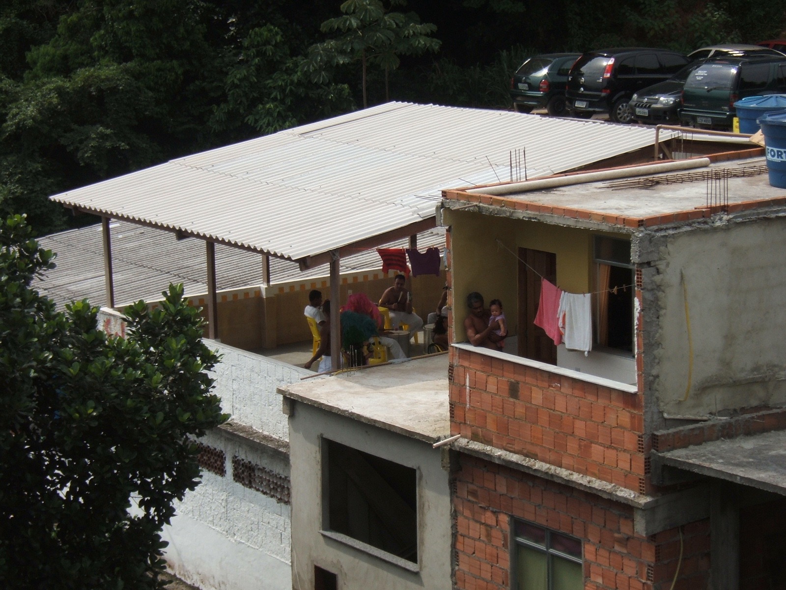 С мусором в фавелах справляются специфически, его просто выкидывают из окон, либо используют специально отведенные для этого склоны. В условиях жары запах, конечно, стоит непередаваемый. Застройка домов в фавелах — хаотичная, жилища, как правило, не достроены и не отштукатурены. При этом, если заглянуть внутрь, то все выглядит вполне прилично. Электричество для работы местных телевизоров и холодильников местные качают путем нелегальных сцепок с проходящими рядом линиями электропередач. Мы также прогуливались мимо буднично работающих магазинов и открытых кафе, где транслировали футбол и сериалы. На смотровой площадке я наблюдала, как семьи на балконах соседних домов готовились к карнавалу. Кто-то репетировал музыкальные номера, кто-то танцевал. При этом со склонов открывался потрясающий вид на океан.