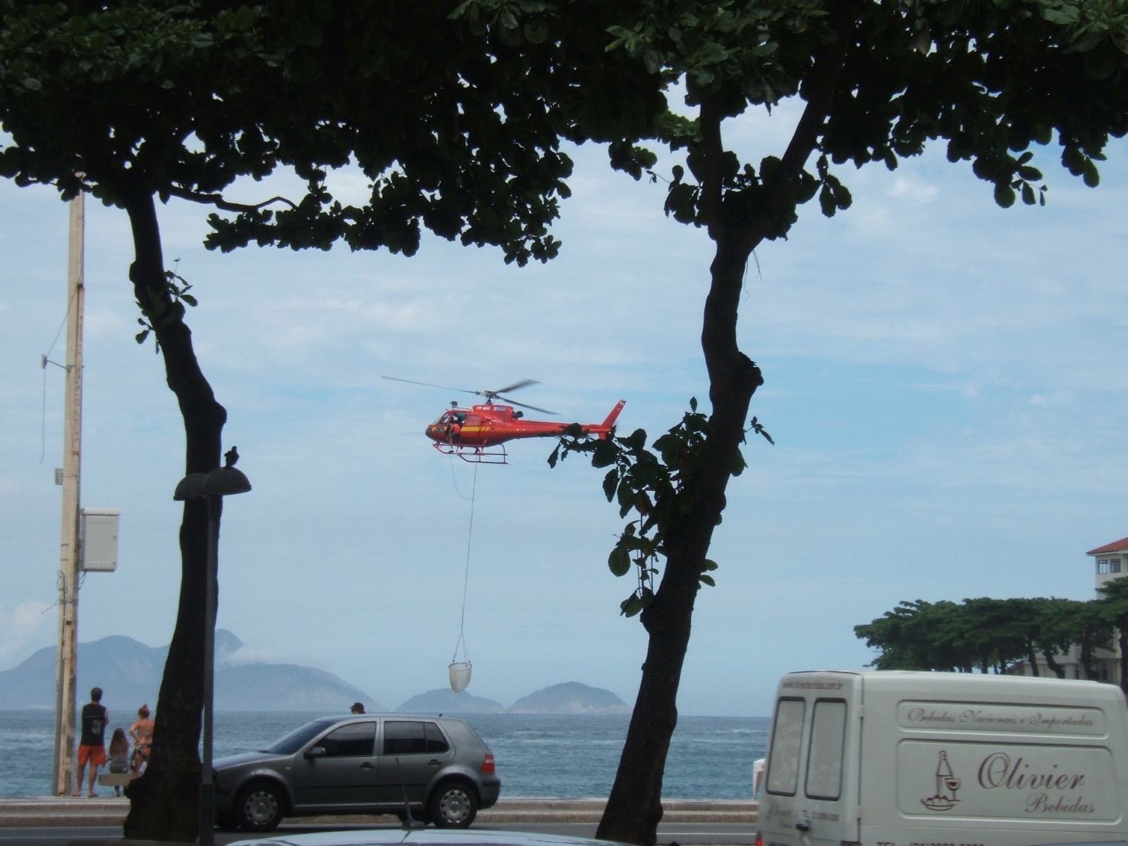 Волны Рио де Жанейро — большие и сильные, поскольку город имеет прямой выход на Атлантику. Кроме того, недалеко от его береговой линии проходят течения, так что купальщиков может легко утащить в открытый океан. Поэтому во время нарастающих волн в качестве предупредительного знака в Рио начинают летать красные спасательные вертолеты и при необходимости вылавливать людей сеткой. Скорее всего в один из таких дней я наблюдала показательную тренировку спасателей, уж очень это смахивало на какое-то шоу. Один парень с вертолета, метров с десяти, прыгал в воду, второй спускал на веревке сетку, затем первый залезал в неё, второй подтаскивал его в кабину. «Смотрите! Ничего страшного! А мы так просто великолепны!»: как бы говорили они. Туристы с удовольствием наблюдали за происходящим с берега. Те, кто видел это первый раз, стояли, открыв рот.