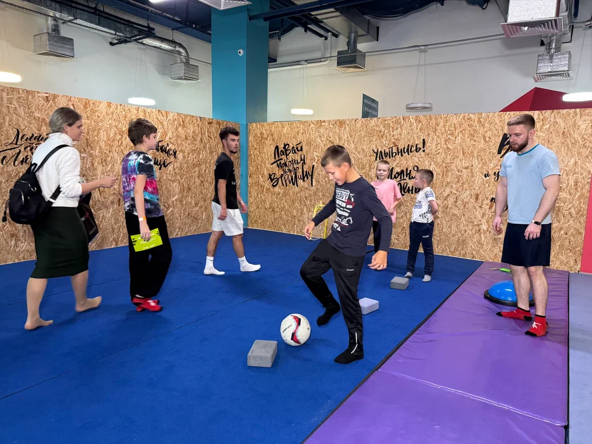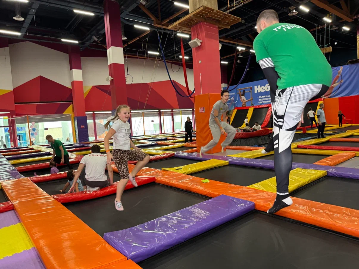 На динамичной спортивной зоне участники смогли одновременно попробовать свои силы в различных видах спорта, включая прыжки на батуте, скалолазание, воздушную и игровую гимнастику, баскетбол, футбол, шахматы, бочча и паркур. Также были организованы дополнительные спортивные активности — метание мячей в цель и «городки».