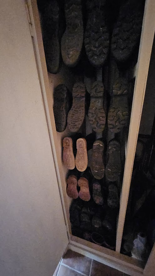 Шкаф с резиновыми сапогами всех размеров в доме Гаэля дает некоторое представление о погоде в Бретани.