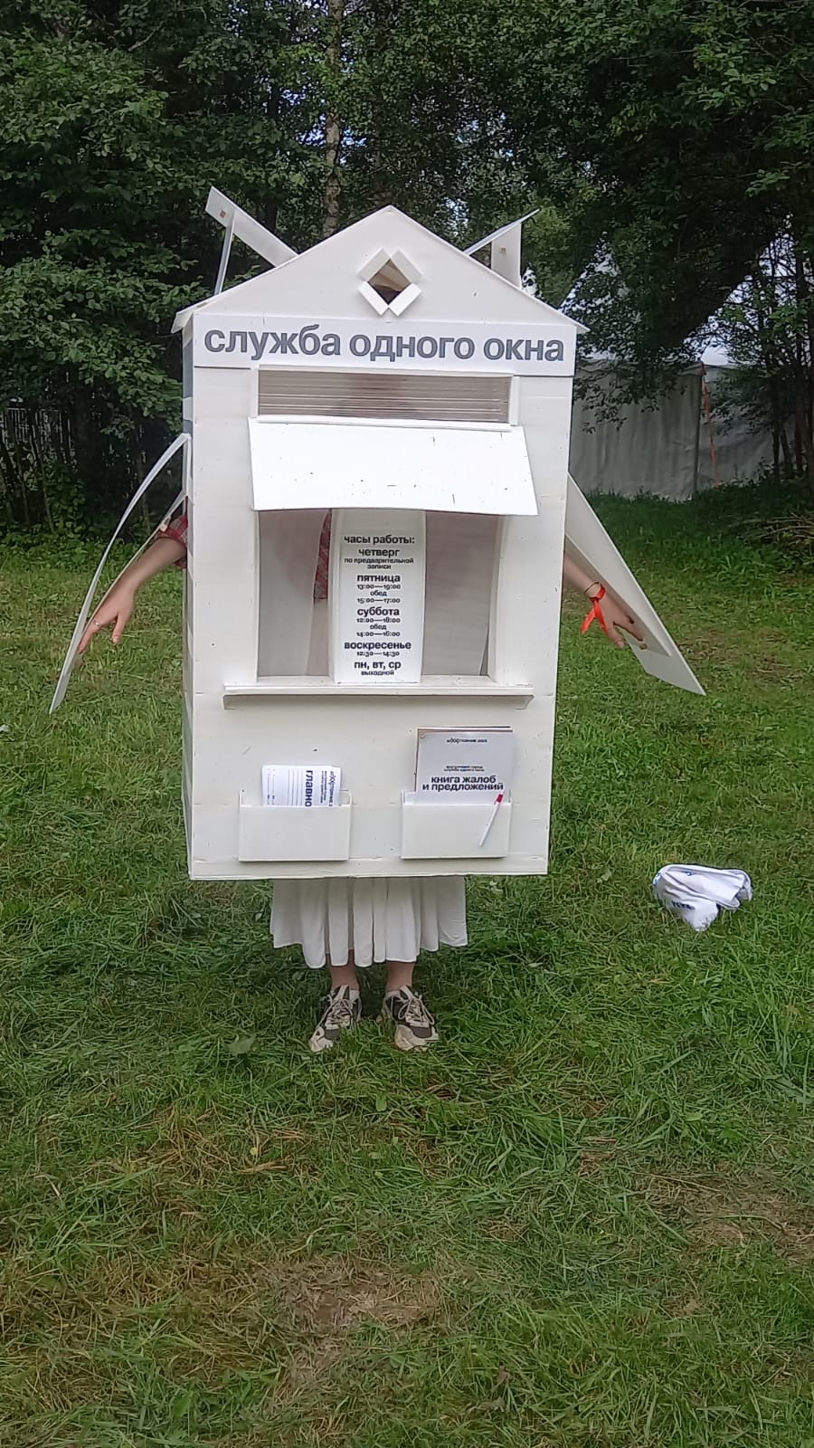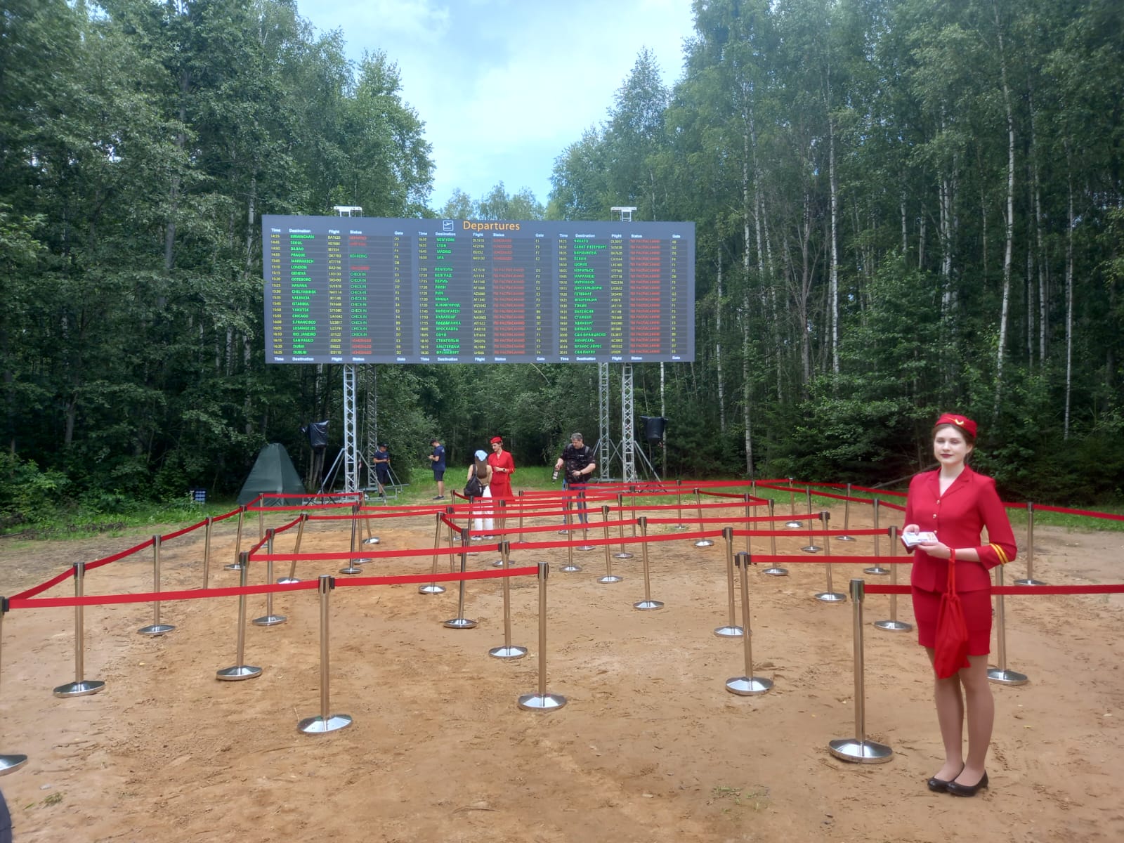 Но, как бы там ни было, главное, что новые арт-объекты сделаны, как всегда на «Архстоянии», оригинально и с юмором. Аэропорт — табло рейсов на поляне посреди леса,